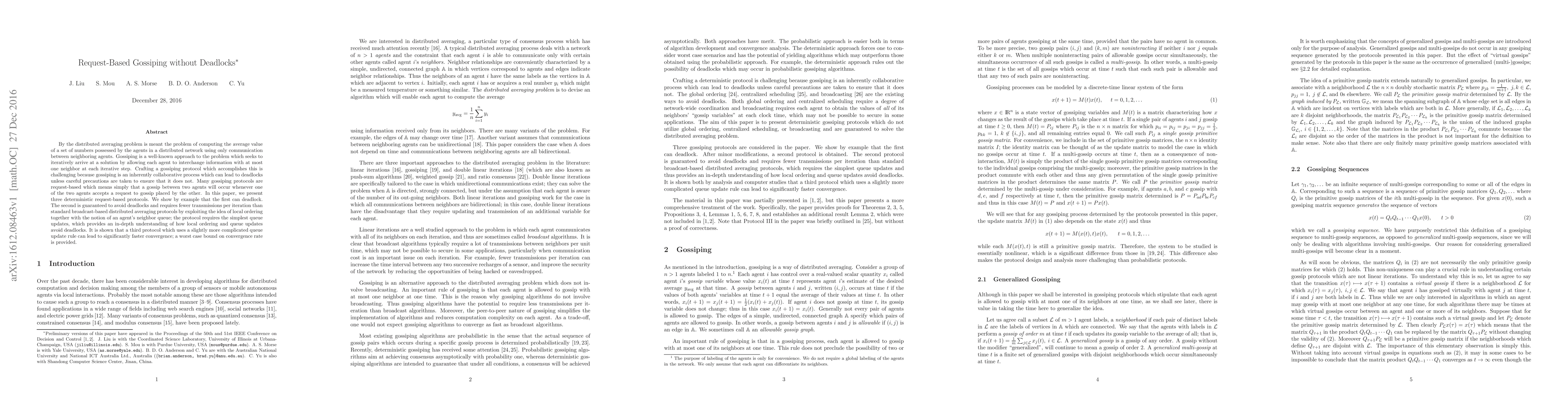 Researchers developed three deterministic request-based gossiping protocols to solve distributed averaging problems without deadlocks, with one protocol guaranteed to avoid deadlocks and another promising faster convergence.