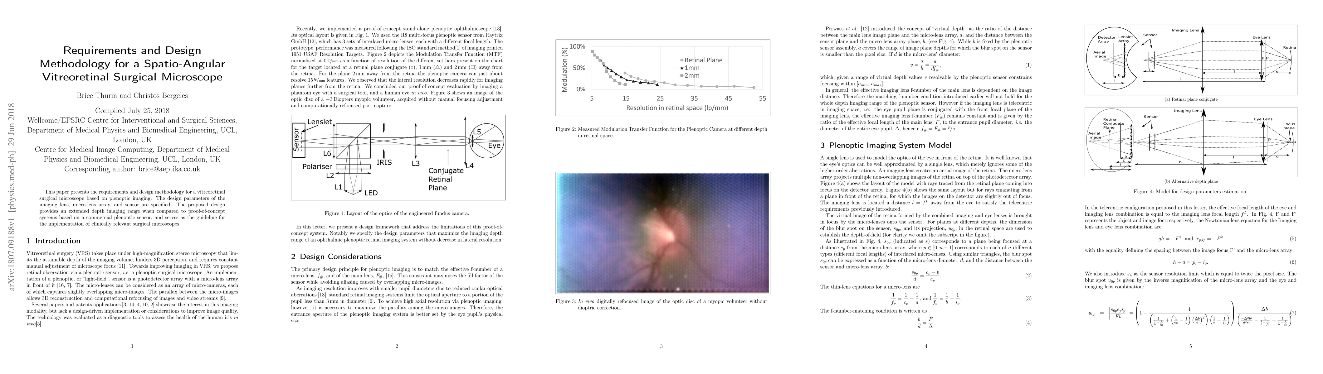 This paper outlines the requirements and design methodology for a plenoptic imaging-based vitreoretinal surgical microscope, specifying the imaging lens, micro-lens array, and sensor parameters to achieve an extended depth imaging range, serving as a guideline for future clinical implementations.