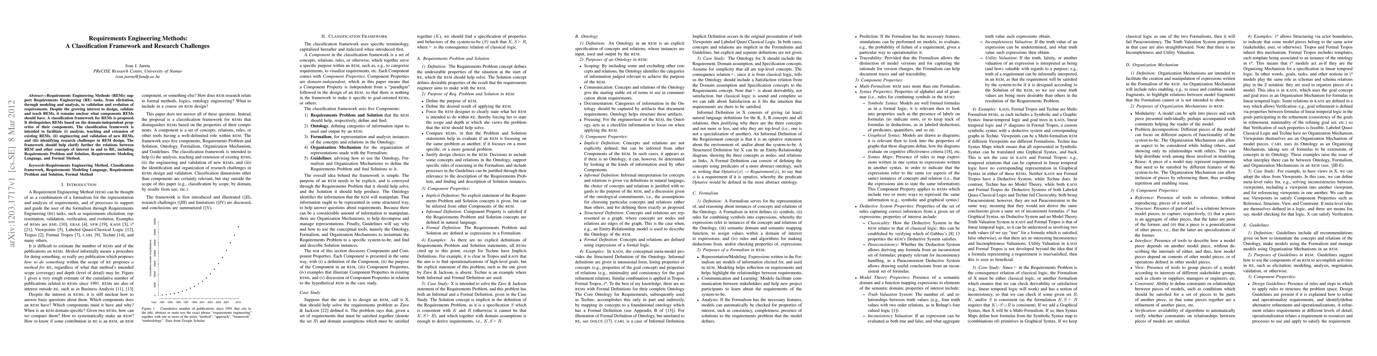 This paper proposes a classification framework for Requirements Engineering Methods (REMs) based on domain-independent properties of their components. The framework aims to facilitate the analysis, teaching, and validation of REMs, as well as to identify research challenges in REM design.