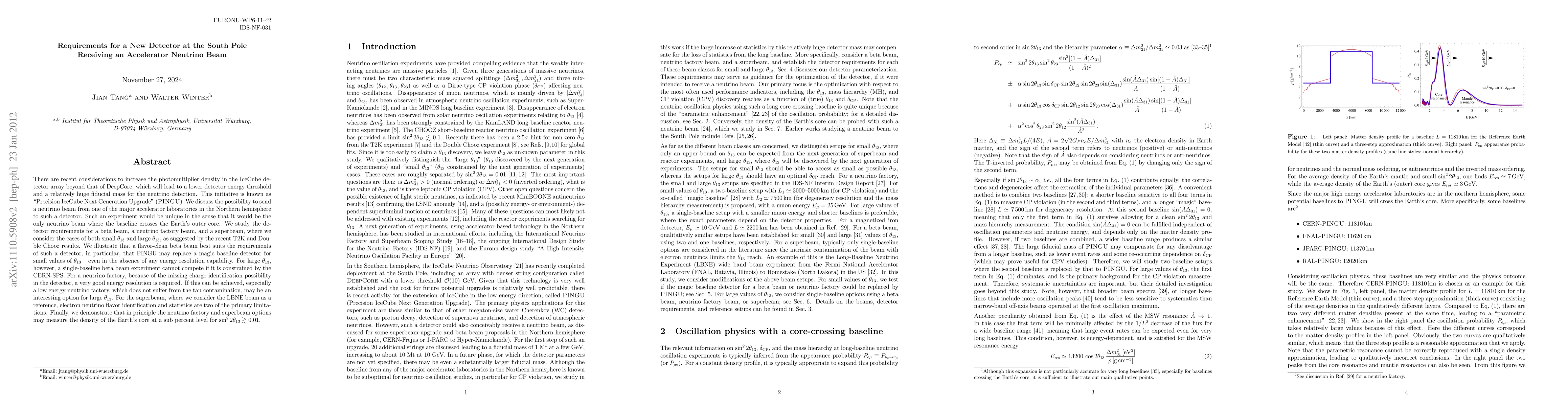 There are recent considerations to increase the photomultiplier density in the IceCube detector array beyond that of DeepCore, which will lead to a lower detection threshold and a huge fiducial mass for the neutrino detection. This initiative is known as "Phased IceCube Next Generation Upgrade" (PINGU). We discuss the possibility to send a neutrino beam from one of the major accelerator laboratories in the Northern hemisphere to such a detector. Such an experiment would be unique in the sense that it would be the only neutrino beam where the baseline crosses the Earth's core. We study the detector requirements for a beta beam, a neutrino factory beam, and a superbeam, where we consider both the cases of small theta_13 and large theta_13, as suggested by the recent T2K and Double Chooz results. We illustrate that a flavor-clean beta beam best suits the requirements of such a detector, in particular, that PINGU may replace a magic baseline detector for small values of theta_13 -- even in the absence of any energy resolution capability. For large theta_13, however, a single-baseline beta beam experiment cannot compete if it is constrained by the CERN-SPS. For a neutrino factory, because of the missing charge identification possibility in the detector, a very good energy resolution is required. If this can be achieved, especially a low energy neutrino factory, which does not suffer from the tau contamination, may be an interesting option for large theta_13. For the superbeam, where we use the LBNE beam as a reference, electron neutrino flavor identification and statistics are two of the main limitations. Finally, we demonstrate that, at least in principle, neutrino factory and superbeam can measure the density of the Earth's core to the sub-percent level for sin^2 2theta_13 larger than 0.01.