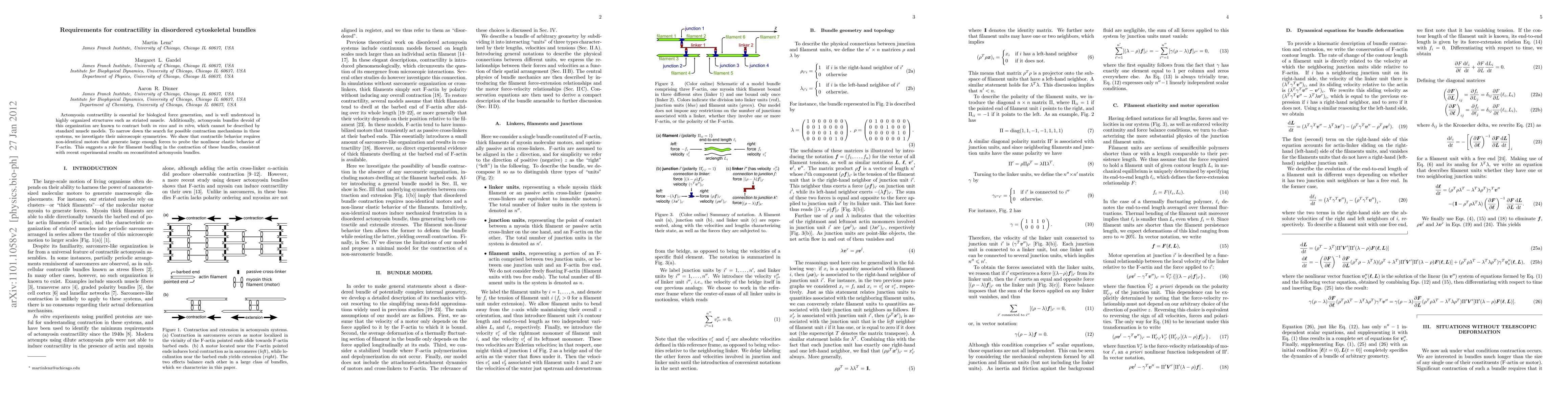 This paper investigates the contractility mechanisms in disordered actomyosin bundles, revealing that non-identical motors generating substantial forces are necessary for contraction. It suggests that filament buckling plays a role in the contraction process, aligning with recent experimental findings on reconstituted bundles.