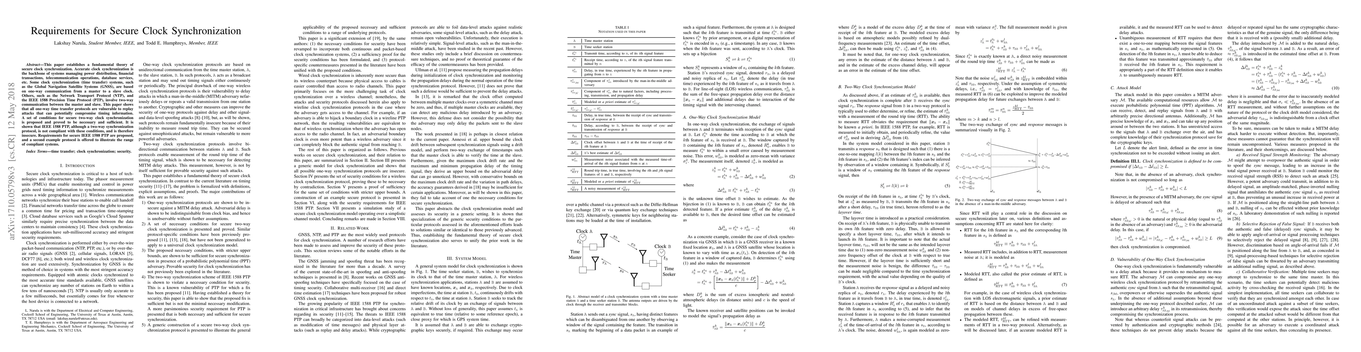 This paper establishes a theory for secure clock synchronization, demonstrating that one-way protocols are vulnerable to replay attacks. It proposes necessary and sufficient conditions for secure two-way synchronization, showing that IEEE 1588 PTP does not meet these conditions and suggesting improvements for secure implementation.