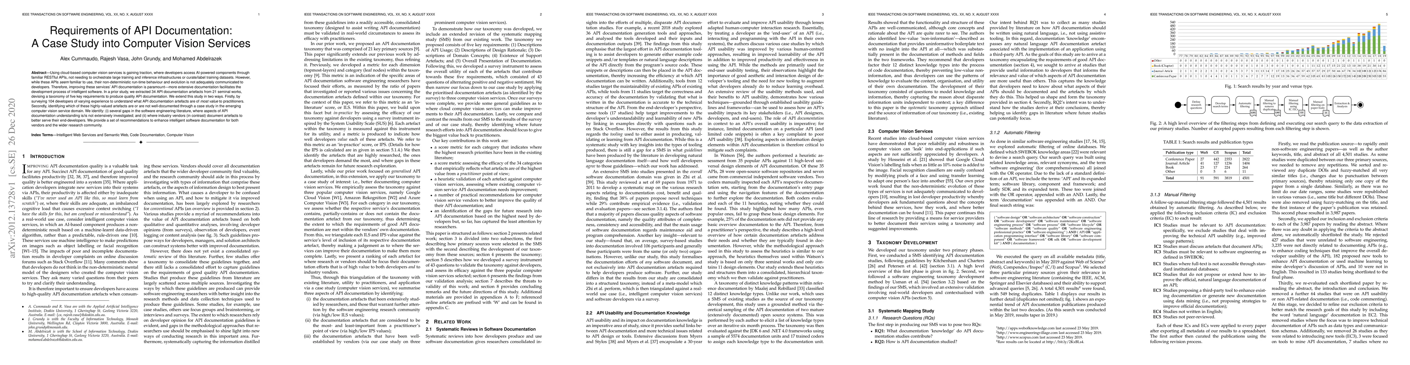 This study investigates the requirements for API documentation in cloud-based computer vision services, surveying developers to identify the most valuable documentation artefacts and examining their presence in industry documentation. Recommendations are provided to improve the quality of API documentation for better software development.