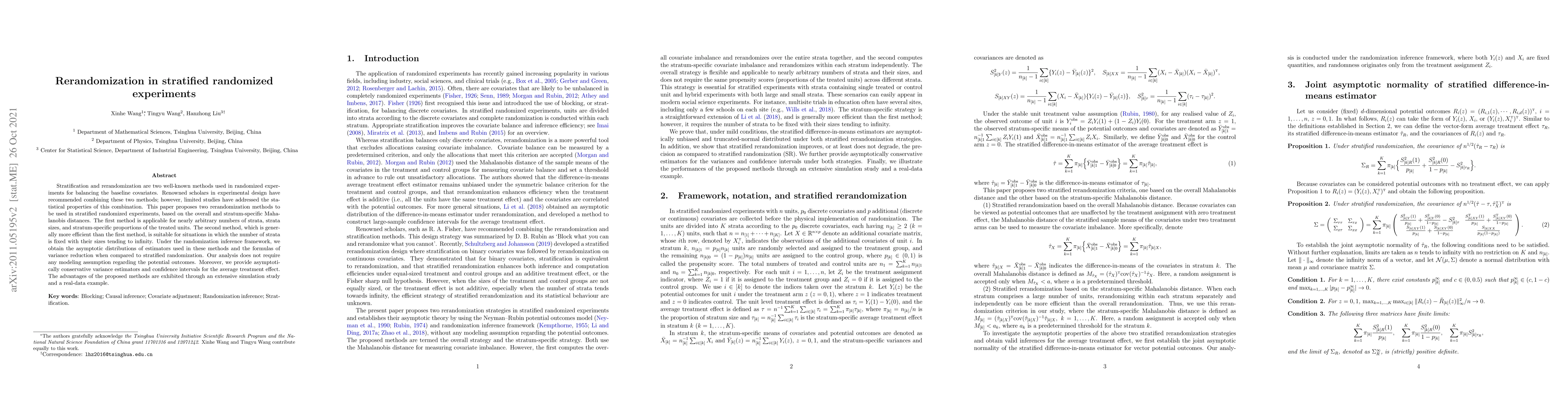 Researchers propose two rerandomization methods for stratified randomized experiments, improving efficiency and accuracy, with applications in balancing baseline covariates.