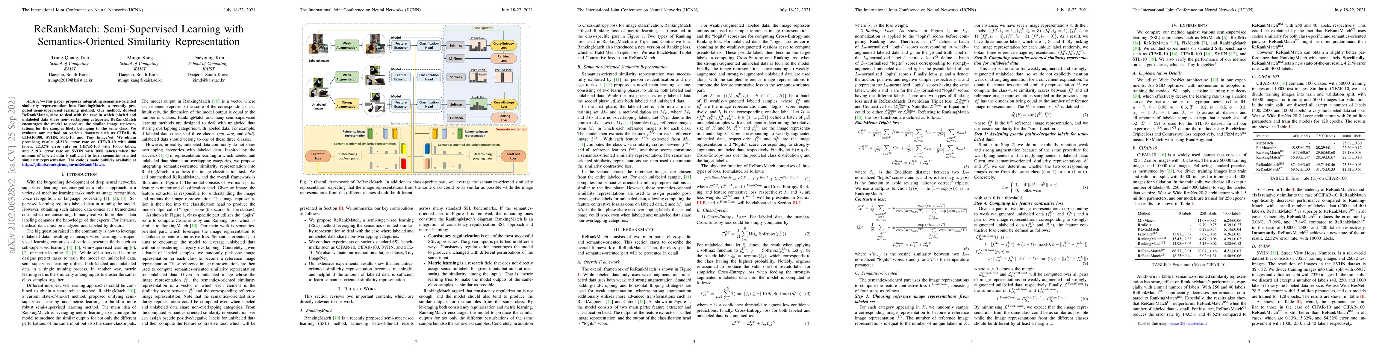 This paper proposes integrating semantics-oriented similarity representation into RankingMatch, a recently proposed semi-supervised learning method. Our method, dubbed ReRankMatch, aims to deal with the case in which labeled and unlabeled data share non-overlapping categories. ReRankMatch encourages the model to produce the similar image representations for the samples likely belonging to the same class. We evaluate our method on various datasets such as CIFAR-10, CIFAR-100, SVHN, STL-10, and Tiny ImageNet. We obtain promising results (4.21% error rate on CIFAR-10 with 4000 labels, 22.32% error rate on CIFAR-100 with 10000 labels, and 2.19% error rate on SVHN with 1000 labels) when the amount of labeled data is sufficient to learn semantics-oriented similarity representation. The code is made publicly available at https://github.com/tqtrunghnvn/ReRankMatch.