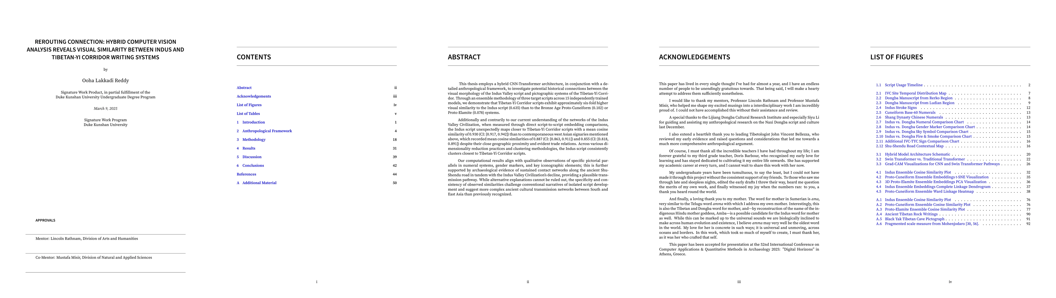 This thesis employs a hybrid CNN-Transformer architecture, alongside a detailed anthropological framework, to investigate potential historical connections between the visual morphology of the Indus Valley script and pictographic systems of the Tibetan-Yi Corridor. Through an ensemble methodology of three target scripts across 15 independently trained models, we demonstrate that Tibetan-Yi Corridor scripts exhibit approximately six-fold higher visual similarity to the Indus script (0.635) than to the Bronze Age Proto-Cuneiform (0.102) or Proto-Elamite (0.078). Contrary to expectations, when measured through direct script-to-script embedding comparisons, the Indus script maps closer to Tibetan-Yi Corridor scripts with a mean cosine similarity of 0.930 (CI: [0.917, 0.942]) than to contemporaneous West Asian signaries, which recorded mean similarities of 0.887 (CI: [0.863, 0.911]) and 0.855 (CI: [0.818, 0.891]). Across dimensionality reduction and clustering methods, the Indus script consistently clusters closest to Tibetan-Yi Corridor scripts. These computational findings align with observed pictorial parallels in numeral systems, gender markers, and iconographic elements. Archaeological evidence of contact networks along the ancient Shu-Shendu road, coinciding with the Indus Civilization's decline, provides a plausible transmission pathway. While alternate explanations cannot be ruled out, the specificity and consistency of similarities suggest more complex cultural transmission networks between South and East Asia than previously recognized.