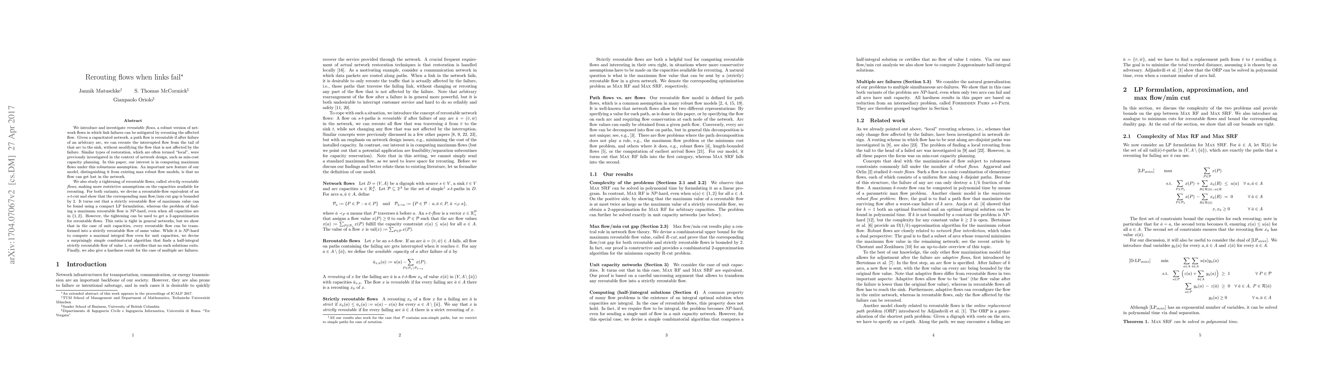 Researchers developed a new model for computing maximum flows in networks with reroutable flows, where link failures can be mitigated by rerouting the affected flow, and found that a strictly reroutable flow of maximum value can be found using a compact LP formulation.