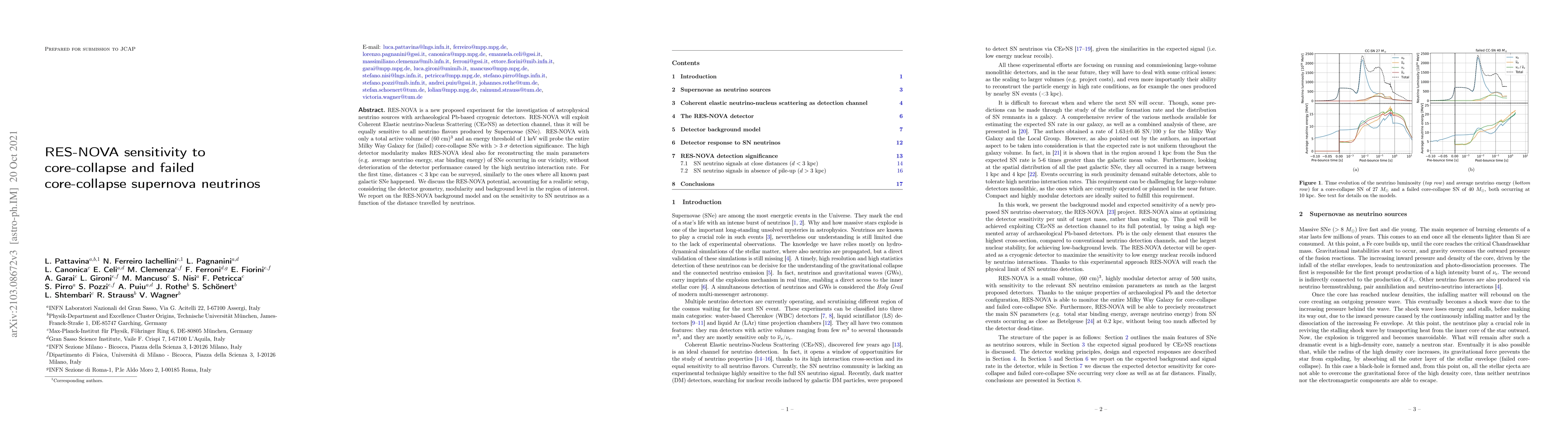 RES-NOVA is a proposed experiment using cryogenic Pb-based detectors to detect Coherent Elastic neutrino-Nucleus Scattering from supernova neutrinos, aiming to probe core-collapse and failed supernovae in the Milky Way. With a small active volume and low energy threshold, it promises detailed reconstruction of nearby supernova parameters.