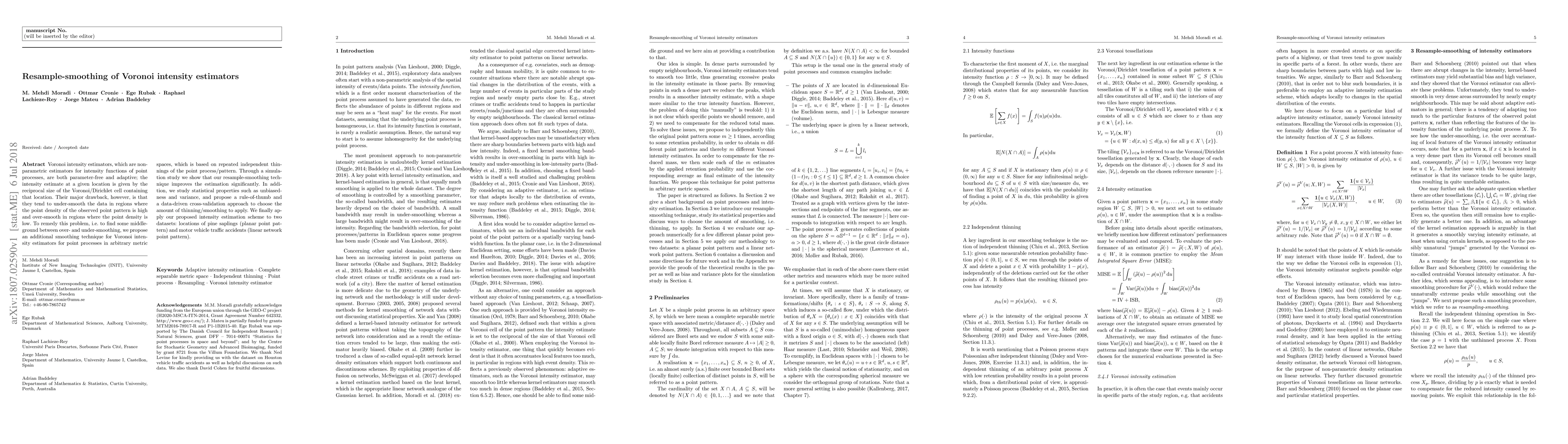 This paper proposes a resample-smoothing technique to improve Voronoi intensity estimators for point processes, addressing their tendency to under-smooth high-density regions and over-smooth low-density regions. The method employs repeated thinnings and is shown to enhance estimation accuracy through simulations and applications to real datasets.
