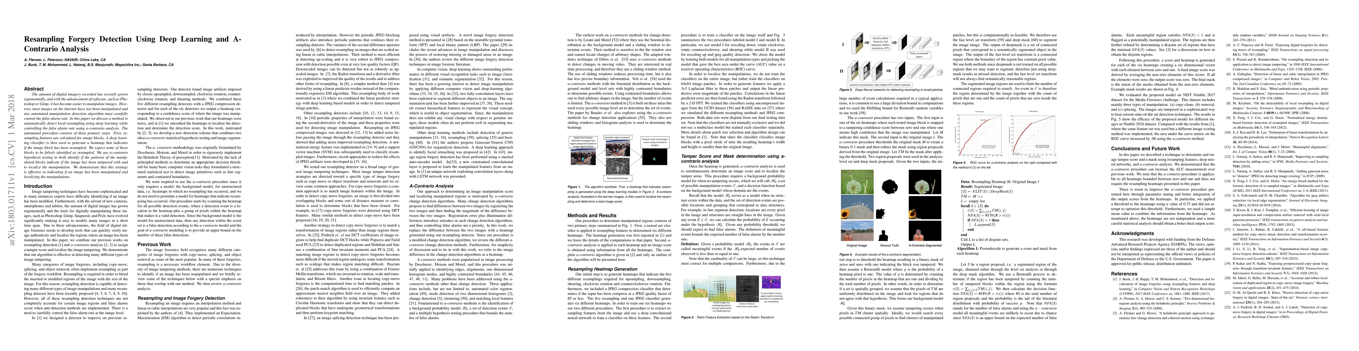 This paper proposes a method for detecting local resampling in digital images using deep learning and a-contrario analysis to minimize false alarms. The approach involves calculating resampling features, employing a deep learning classifier to create a heatmap, and utilizing a-contrario analysis to confirm and localize manipulations.