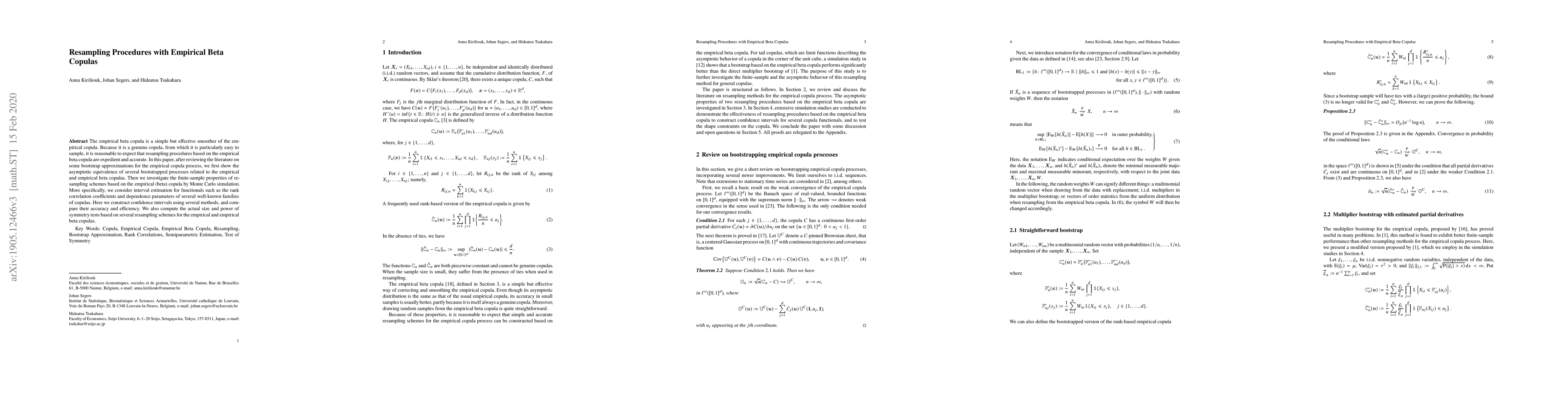 This paper explores resampling procedures using the empirical beta copula, demonstrating its asymptotic equivalence to the empirical copula and evaluating its finite-sample properties through Monte Carlo simulations. It assesses the accuracy of confidence intervals for rank correlation coefficients and tests the power of symmetry tests based on various resampling schemes.