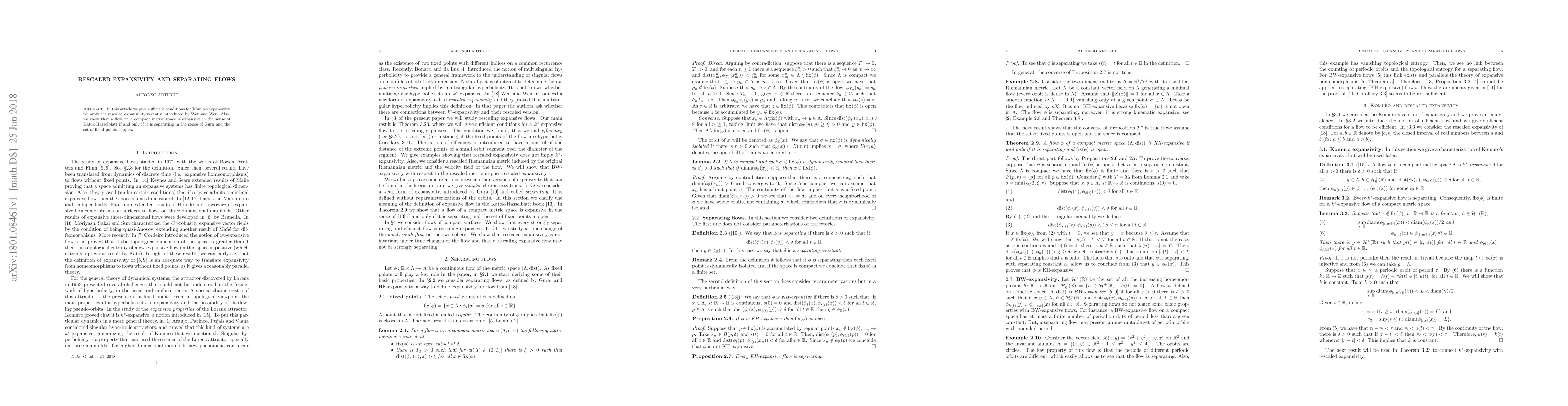 In this article we give sufficient conditions for Komuro expansivity to imply the rescaled expansivity recently introduced by Wen and Wen. Also, we show that a flow on a compact metric space is expansive in the sense of Katok-Hasselblatt if and only if it is separating in the sense of Gura and the set of fixed points is open.