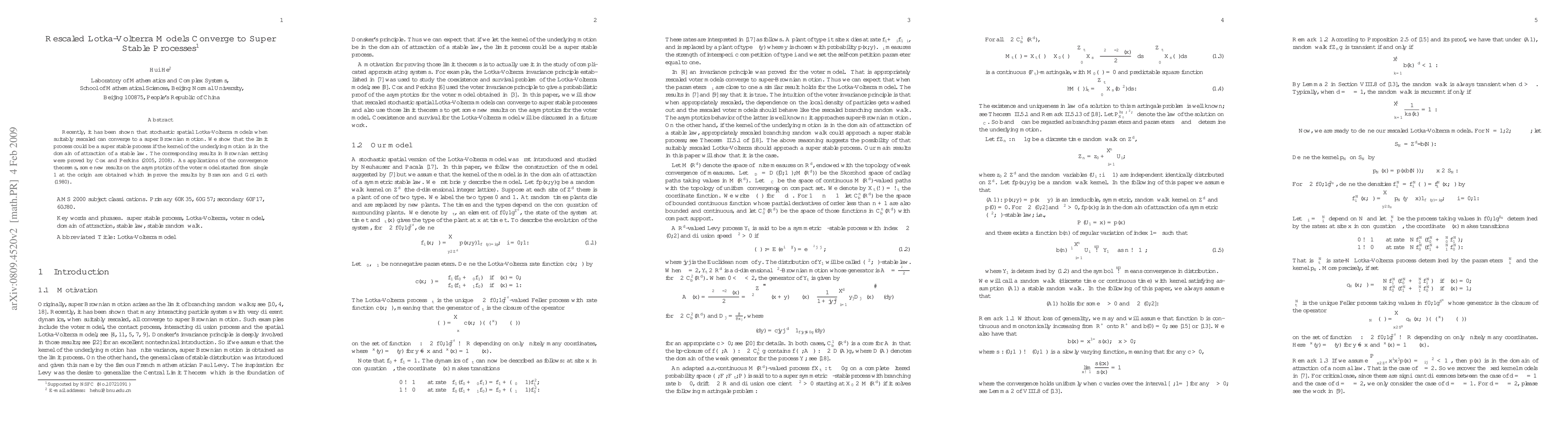 Stochastic Lotka-Volterra models converge to a super stable process when rescaled and the kernel of the underlying motion is in the domain of attraction of a stable law.