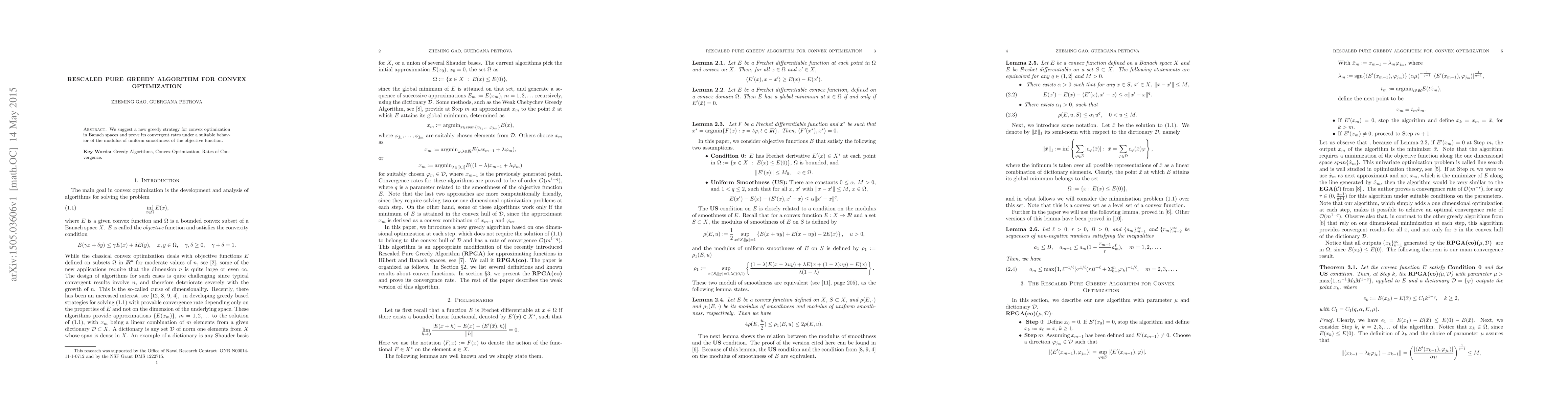 Summary: This paper proposes a rescaled pure greedy algorithm for convex optimization in Banach spaces and demonstrates its convergence rates contingent on the modulus of uniform smoothness of the objective function. The method aims to enhance optimization efficiency in complex spaces.