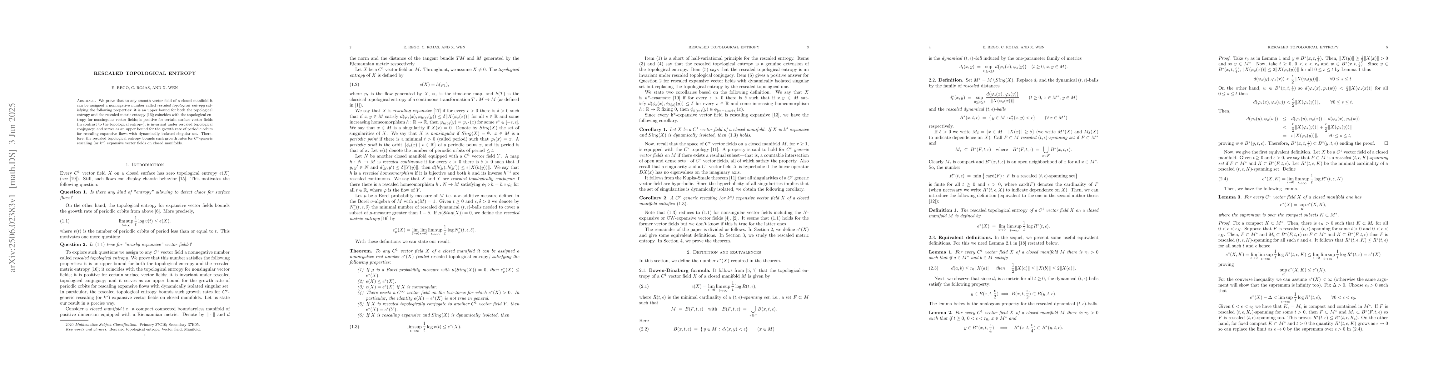 The paper proves the existence of a nonnegative number, termed 'rescaled topological entropy', for smooth vector fields on closed manifolds using mathematical proofs and comparisons with existing entropy concepts.