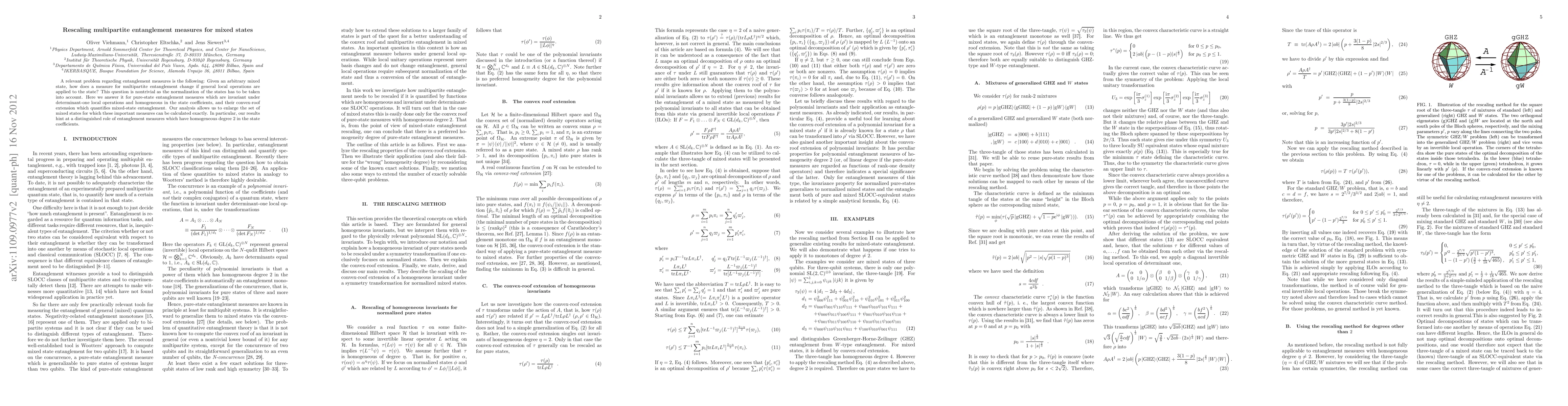 This paper examines how multipartite entanglement measures for mixed states change under local operations, emphasizing the need to consider state normalization. It finds that measures invariant under determinant 1 local operations and their convex-roof extensions can be exactly calculated for a broader range of mixed states, particularly highlighting the significance of degree 2 homogeneity in state coefficients.