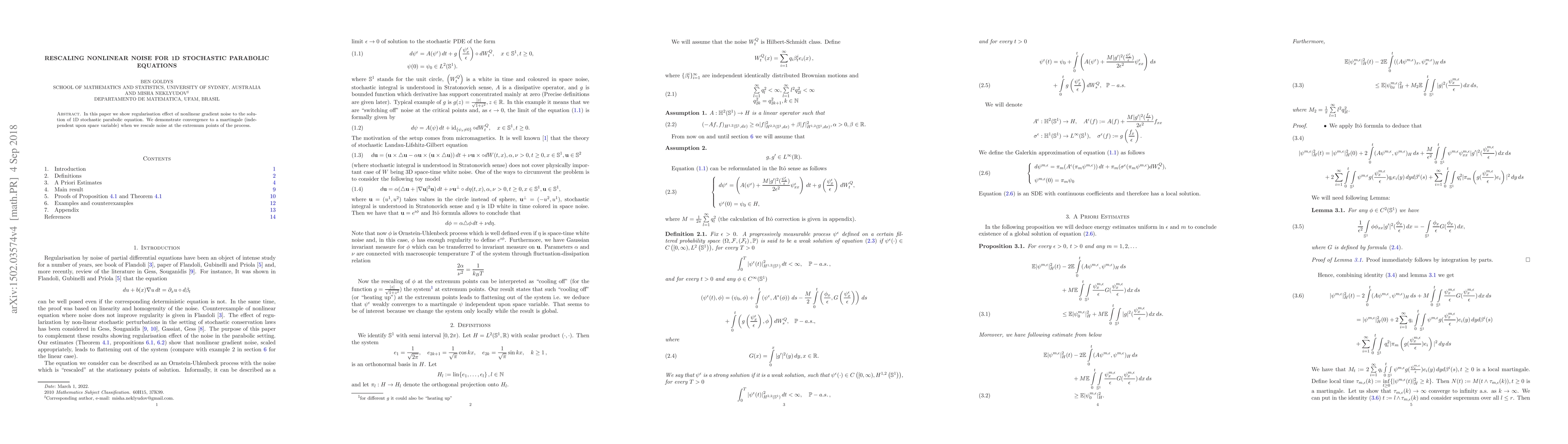 In this paper we will show that the solution of 1D stochastic parabolic equation with additive noise converges to a martingale (independent upon space variable) when we rescale noise at the extremum points of the process.