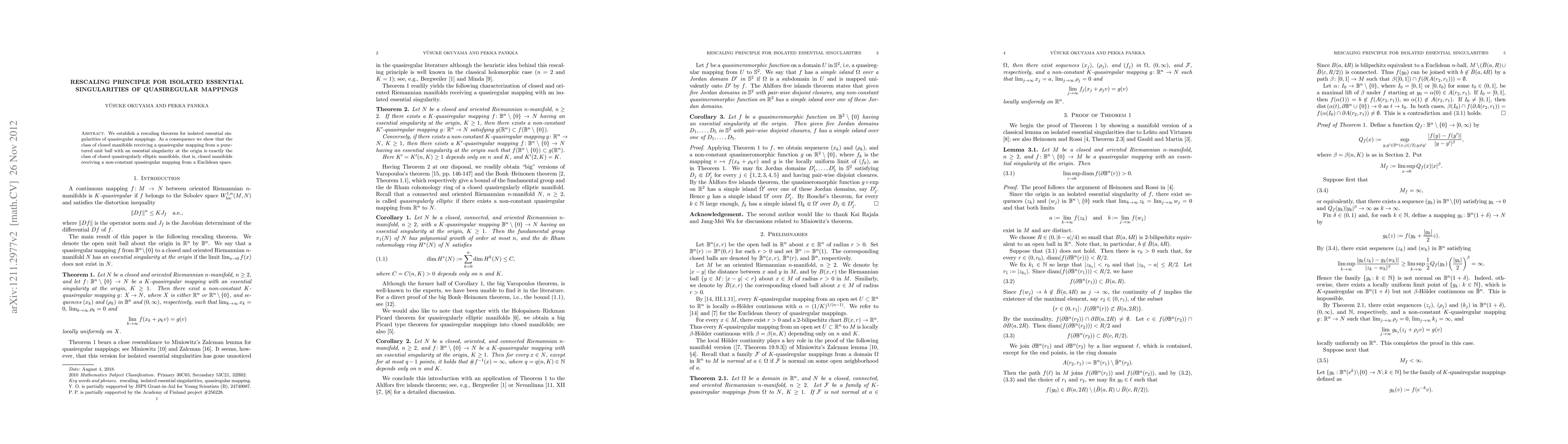 Summary: This paper establishes a rescaling theorem for isolated essential singularities in quasiregular mappings, demonstrating that closed manifolds admitting such mappings from a punctured unit ball correspond precisely to closed quasiregularly elliptic manifolds.