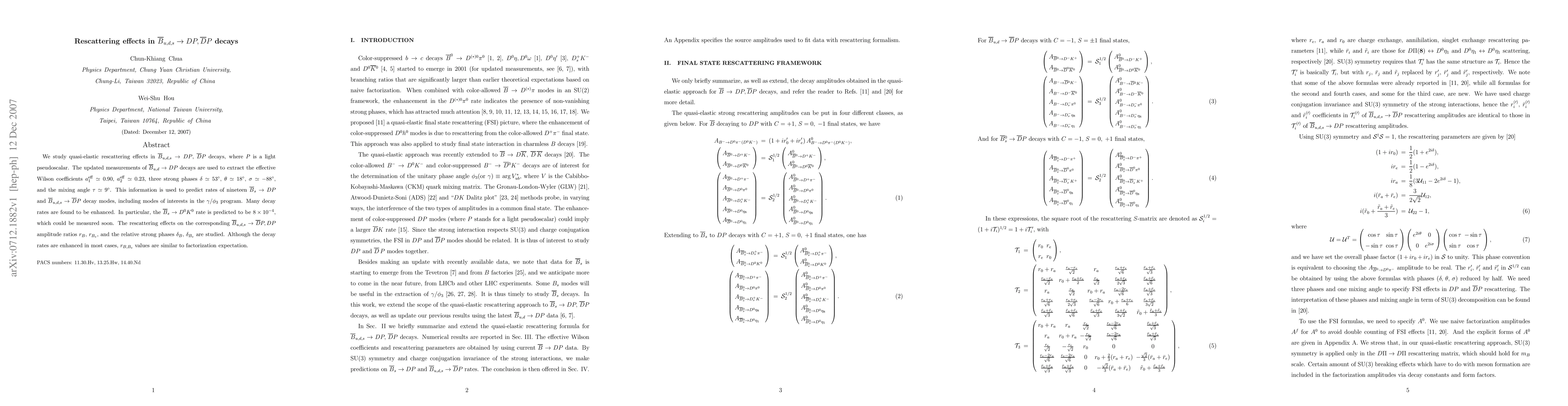 This paper investigates quasi-elastic rescattering effects in B_{u,d,s}(bar) to DP, D(bar)P decays, extracting effective Wilson coefficients and strong phases. Predictions for decay rates, including the B_s(bar) to D0 K0 mode, show significant enhancement, though rescattering impacts on amplitude ratios and strong phases remain consistent with factorization expectations.