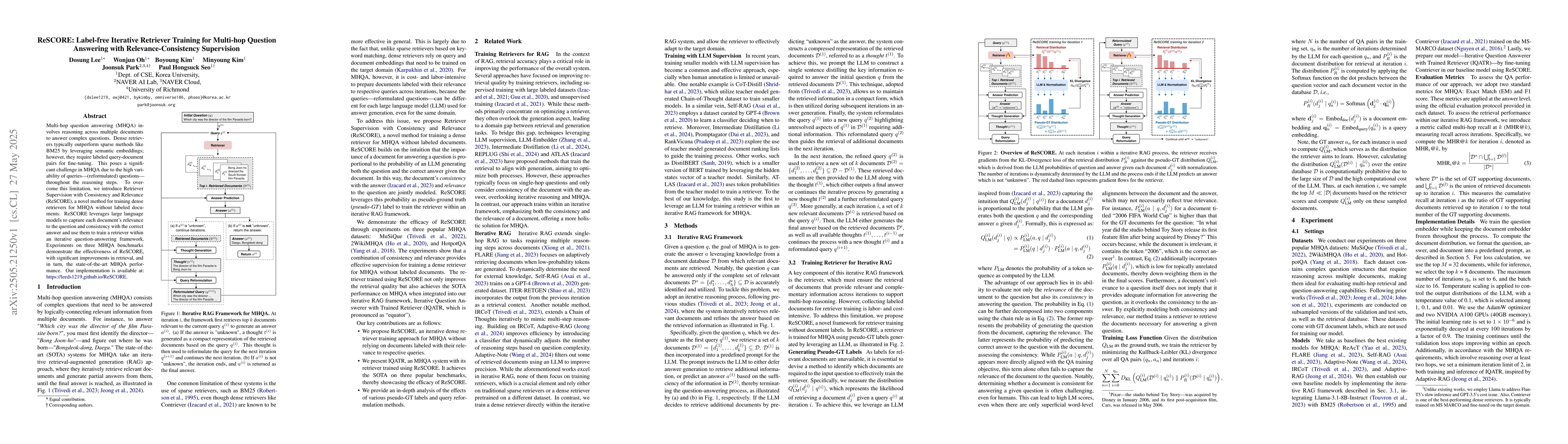 ReSCORE introduces a novel, label-free iterative retriever training method for MHQA using relevance-consistency supervision.
