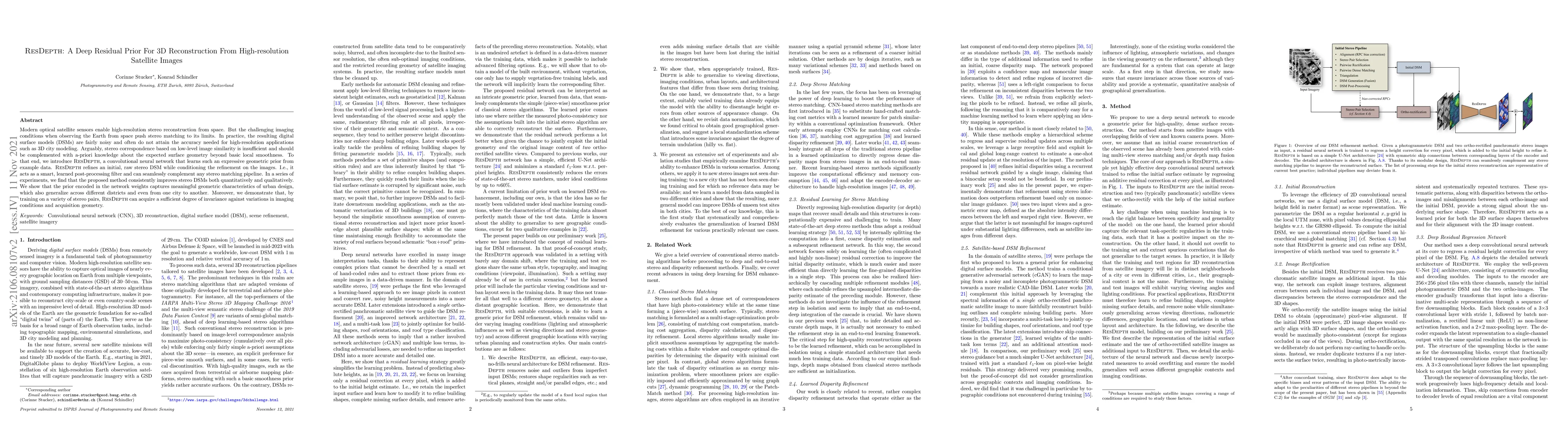 A new deep learning method called ResDepth improves 3D reconstruction from high-resolution satellite images by incorporating a geometric prior that captures urban design characteristics.