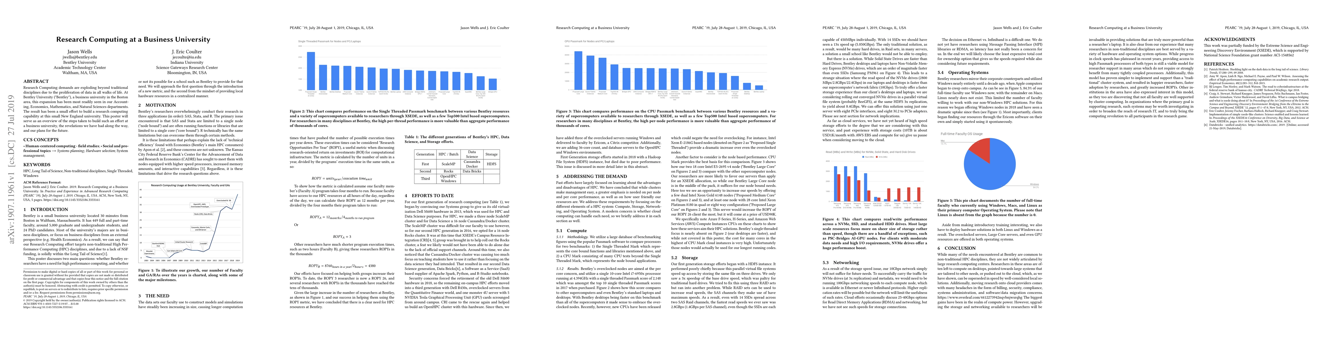 This paper outlines Bentley University's efforts to develop a research computing capability amidst growing data demands, particularly in Accounting, Economics, Mathematics, and Natural Sciences. It highlights the challenges and plans for future growth in this area at a business-focused institution.