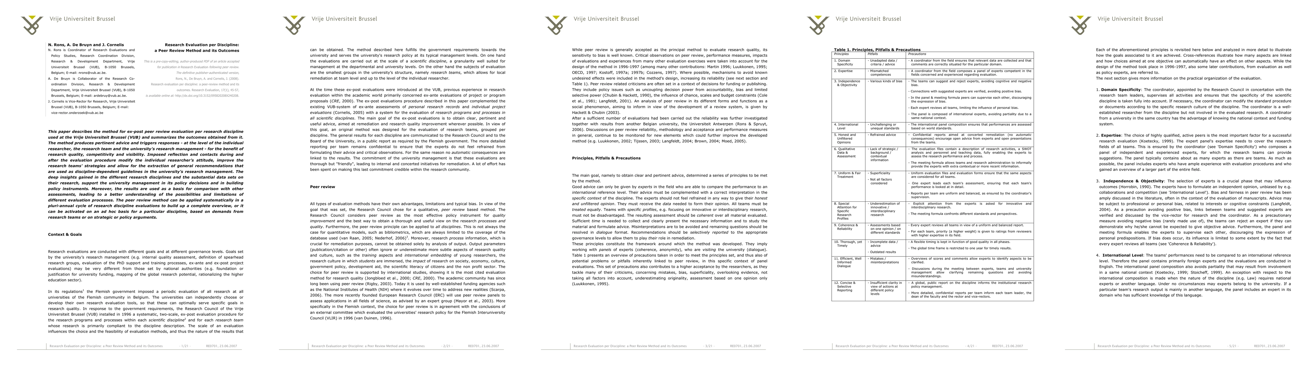 This paper outlines a discipline-specific ex-post peer review method at Vrije Universiteit Brussel, highlighting its outcomes that improve research quality and competitiveness, and provides actionable insights for individual researchers, teams, and university management. The method fosters reflection and strategic improvements, aiding policy decisions and comparative evaluations.