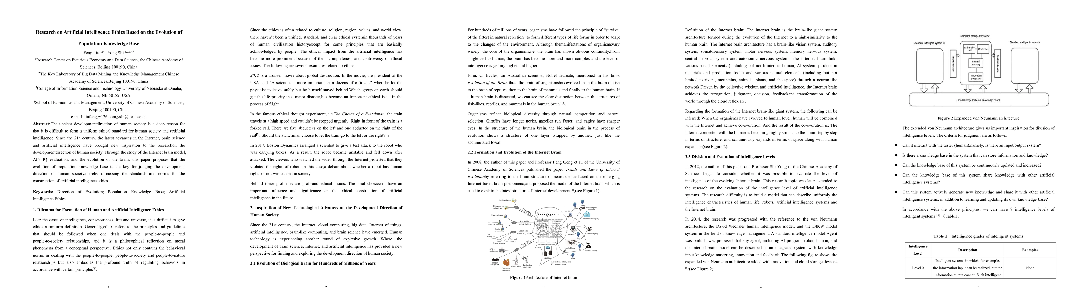 The unclear development direction of human society is a deep reason for that it is difficult to form a uniform ethical standard for human society and artificial intelligence. Since the 21st century, the latest advances in the Internet, brain science and artificial intelligence have brought new inspiration to the research on the development direction of human society. Through the study of the Internet brain model, AI IQ evaluation, and the evolution of the brain, this paper proposes that the evolution of population knowledge base is the key for judging the development direction of human society, thereby discussing the standards and norms for the construction of artificial intelligence ethics.