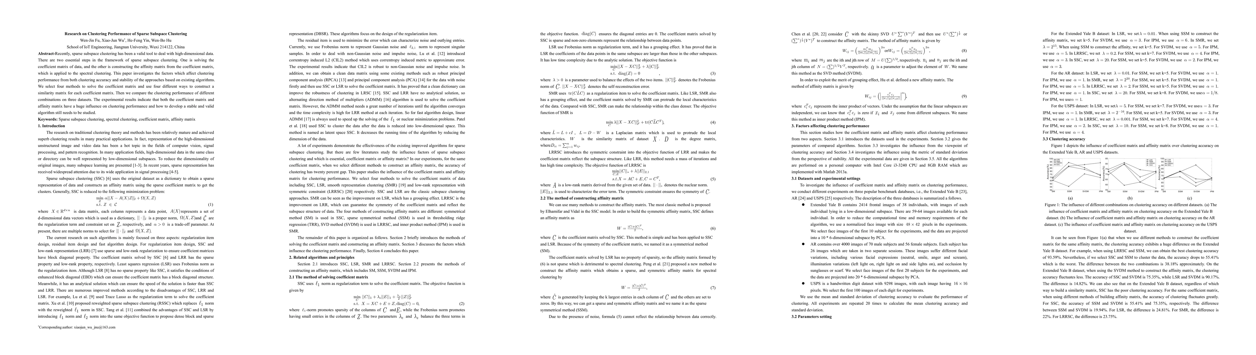 This paper examines the impact of coefficient matrix solutions and affinity matrix construction on the performance of sparse subspace clustering, comparing various combinations on three datasets. Results show significant influence on clustering accuracy and stability, highlighting the need for further algorithm development.