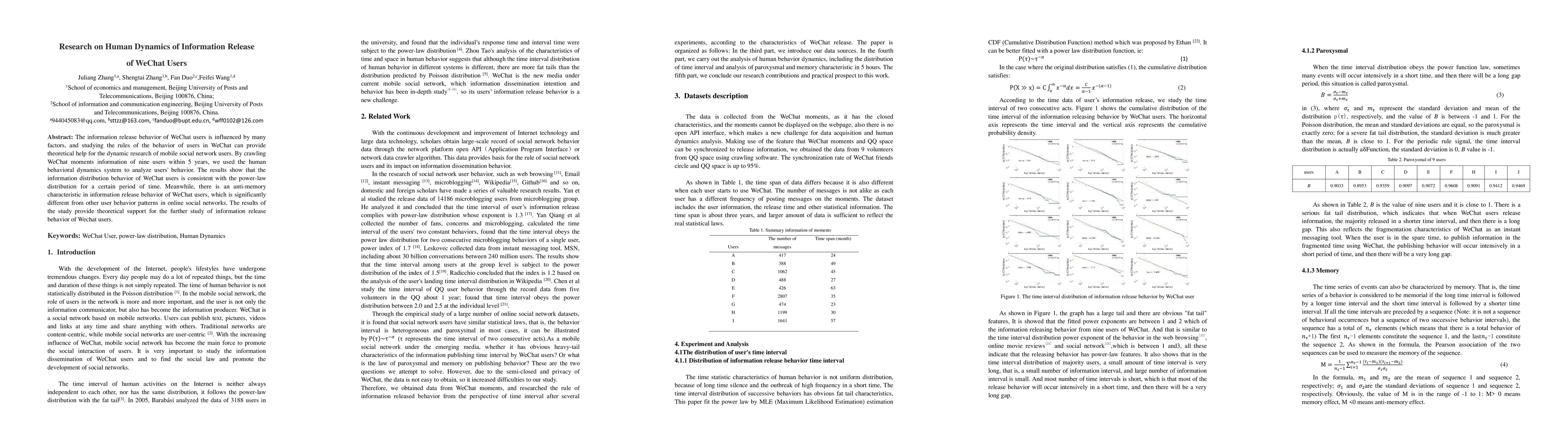 This study analyzes the information release behavior of WeChat users over five years, revealing a power-law distribution in their distribution patterns and an anti-memory characteristic, differing from typical online social network behaviors. These findings offer theoretical insights into the dynamics of mobile social network users.