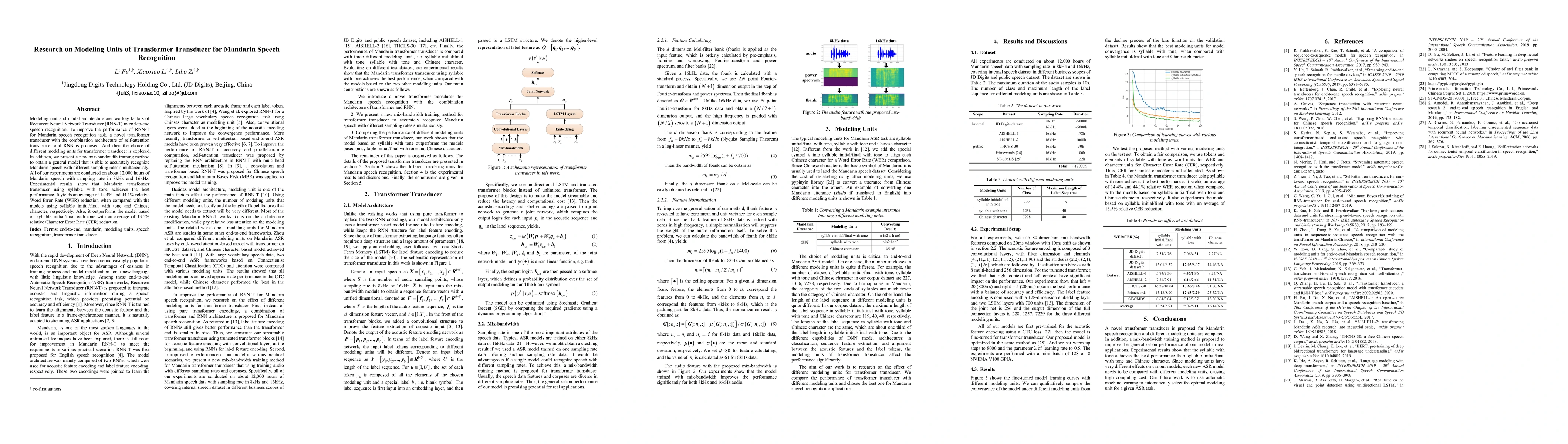 The research proposes a novel transformer transducer combining self-attention and RNN for Mandarin speech recognition, exploring different modeling units and a mix-bandwidth training method. Experiments show that using syllable with tone yields a 14.4% WER and 44.1% WER reduction compared to other units, and a 13.5% CER reduction over syllable initial/final with tone.