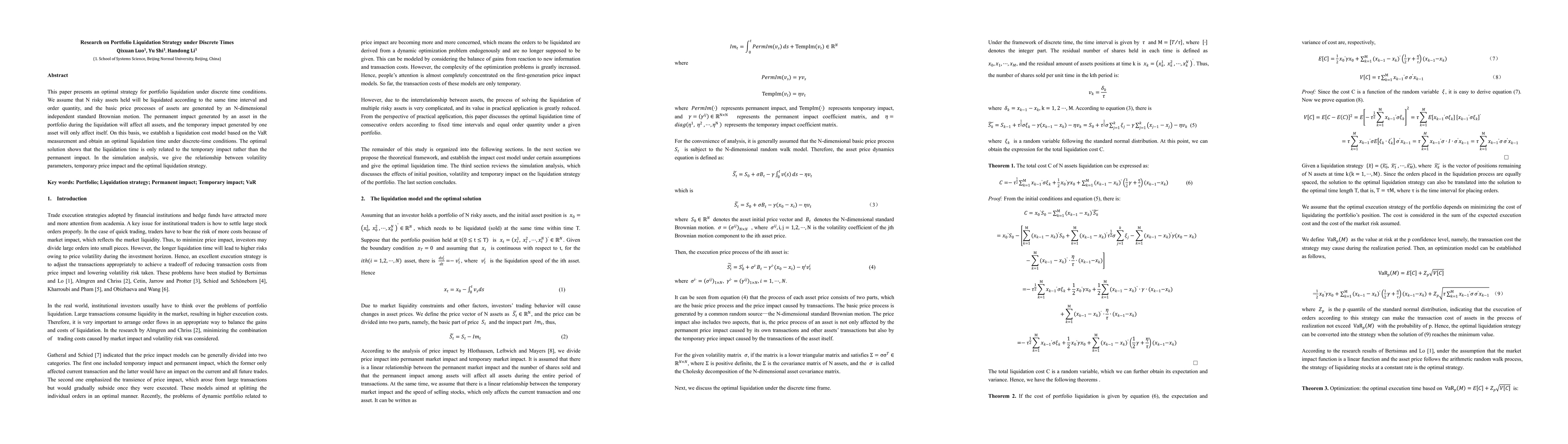 This paper develops an optimal liquidation strategy for portfolios of N risky assets under discrete time, considering both permanent and temporary price impacts. The optimal liquidation time is found to depend solely on temporary impacts, not permanent ones, and is derived using a liquidation cost model based on VaR measurement.