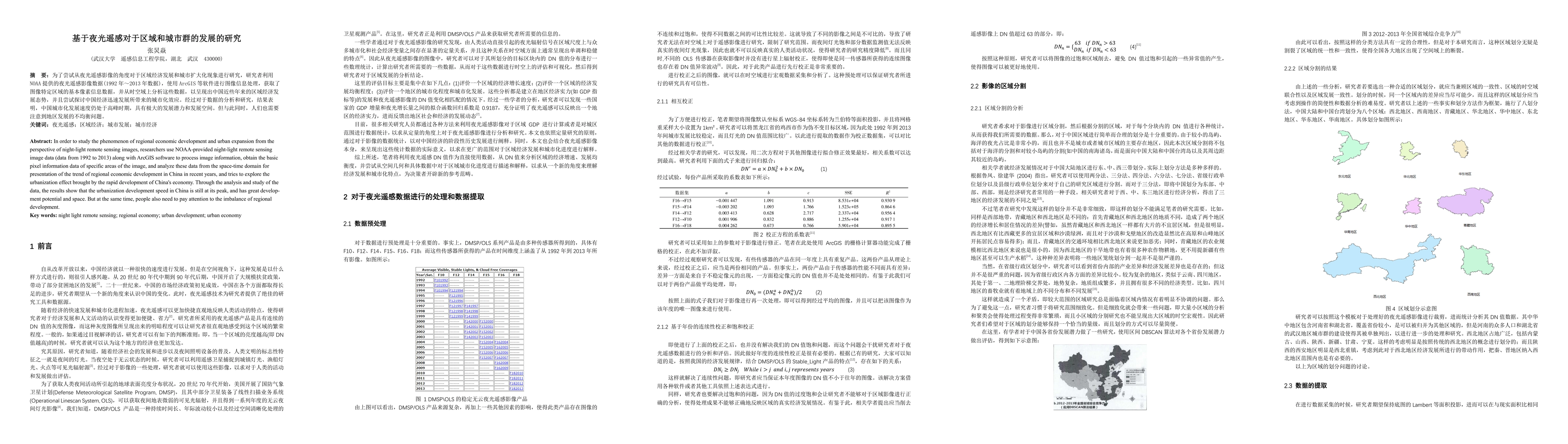 This study uses NOAA night-light remote sensing data from 1992 to 2013 and ArcGIS software to analyze regional economic development and urban expansion in China. The findings indicate that China's urbanization is at its peak with significant development potential, but also highlights the need to address regional development imbalances.