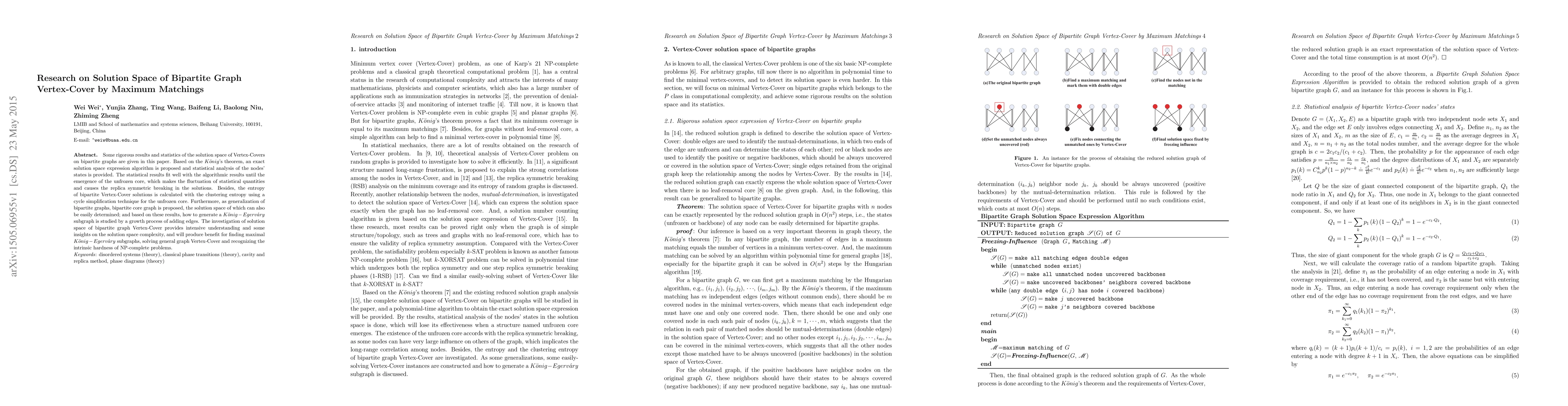 This paper presents an algorithm to determine the exact solution space for Vertex-Covers on bipartite graphs based on König's theorem, revealing insights into the complexity and entropy of such solutions, while also exploring generalizations to bipartite core graphs and the generation of König-Egerváry subgraphs.