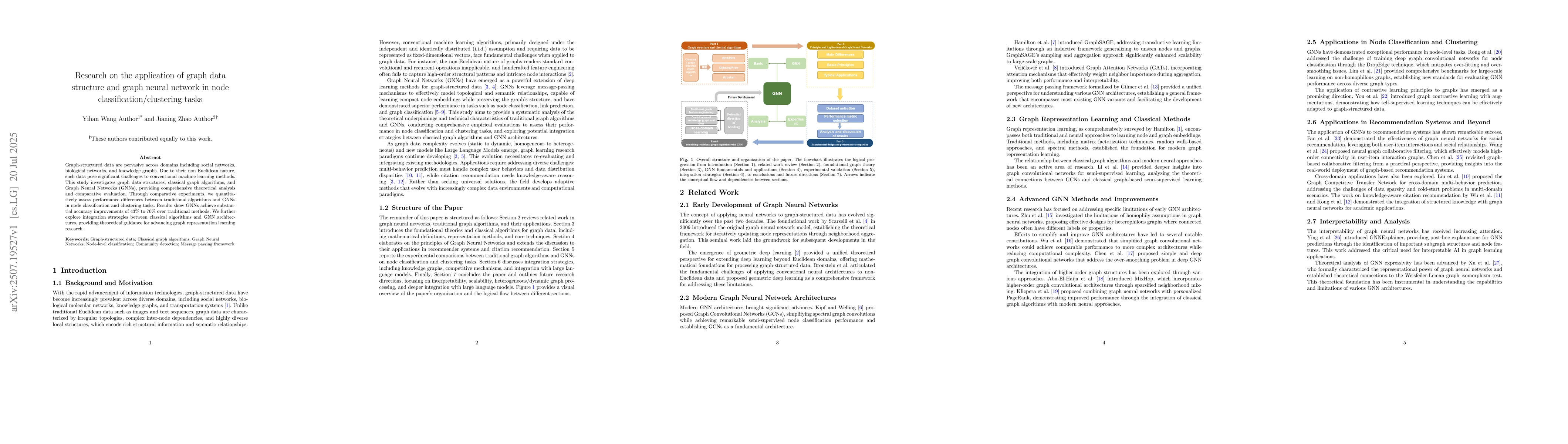 Graph-structured data are pervasive across domains including social networks, biological networks, and knowledge graphs. Due to their non-Euclidean nature, such data pose significant challenges to conventional machine learning methods. This study investigates graph data structures, classical graph algorithms, and Graph Neural Networks (GNNs), providing comprehensive theoretical analysis and comparative evaluation. Through comparative experiments, we quantitatively assess performance differences between traditional algorithms and GNNs in node classification and clustering tasks. Results show GNNs achieve substantial accuracy improvements of 43% to 70% over traditional methods. We further explore integration strategies between classical algorithms and GNN architectures, providing theoretical guidance for advancing graph representation learning research.