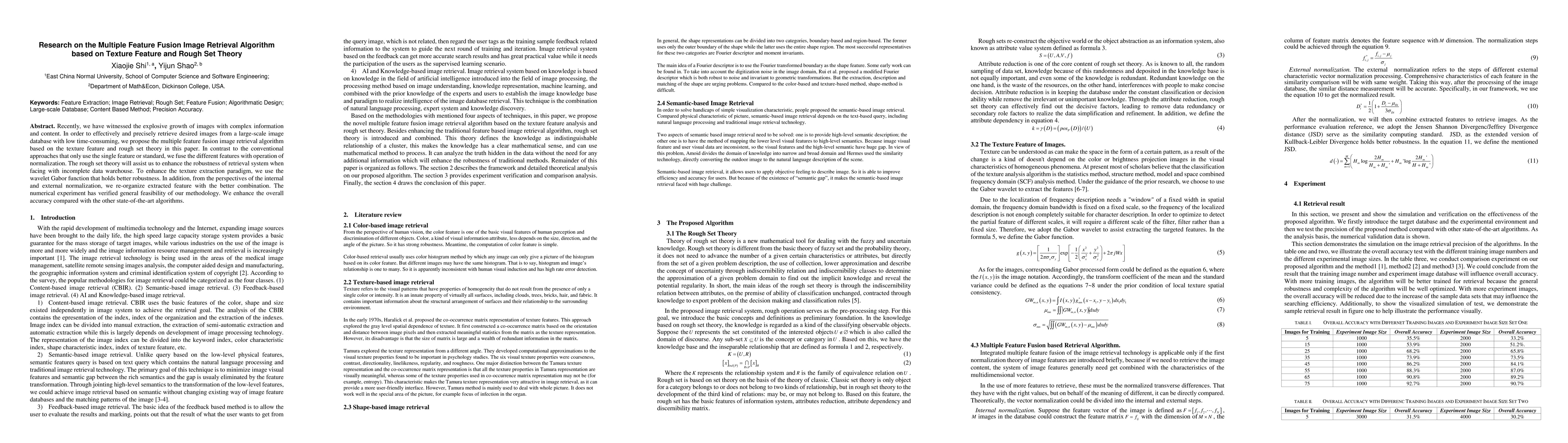 This paper proposes a multiple feature fusion image retrieval algorithm that integrates texture features and rough set theory to enhance retrieval accuracy and robustness. By combining texture extraction using wavelet Gabor functions and internal/external normalization, the method outperforms existing single-feature approaches, as demonstrated by numerical experiments.