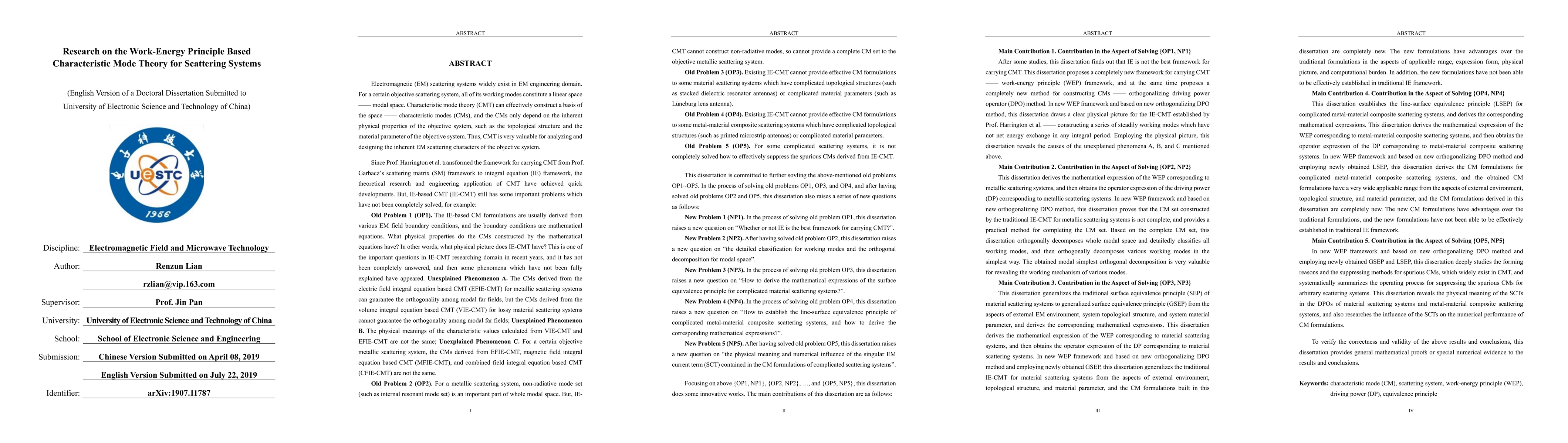 Electromagnetic (EM) scattering systems widely exist in EM engineering domain. For a certain objective scattering system, all of its working modes constitute a linear space, i.e. modal space. Characteristic mode theory (CMT) can effectively construct a basis of the space, i.e. characteristic modes (CMs), and the CMs only depend on the inherent physical properties of the objective system, such as the topological structure and the material parameter of the objective system. Thus, CMT is very valuable for analyzing and designing the inherent EM scattering characters of the objective system. This work finds out that integral equation (IE) is not the best framework for carrying CMT. This dissertation proposes a completely new framework for carrying CMT, i.e. work-energy principle (WEP) framework, and at the same time proposes a completely new method for constructing CMs, i.e. orthogonalizing driving power operator (DPO) method. In new WEP framework and based on new orthogonalizing DPO method, this work resolves 5 pairs of important unsolved problems existing in CMT domain.