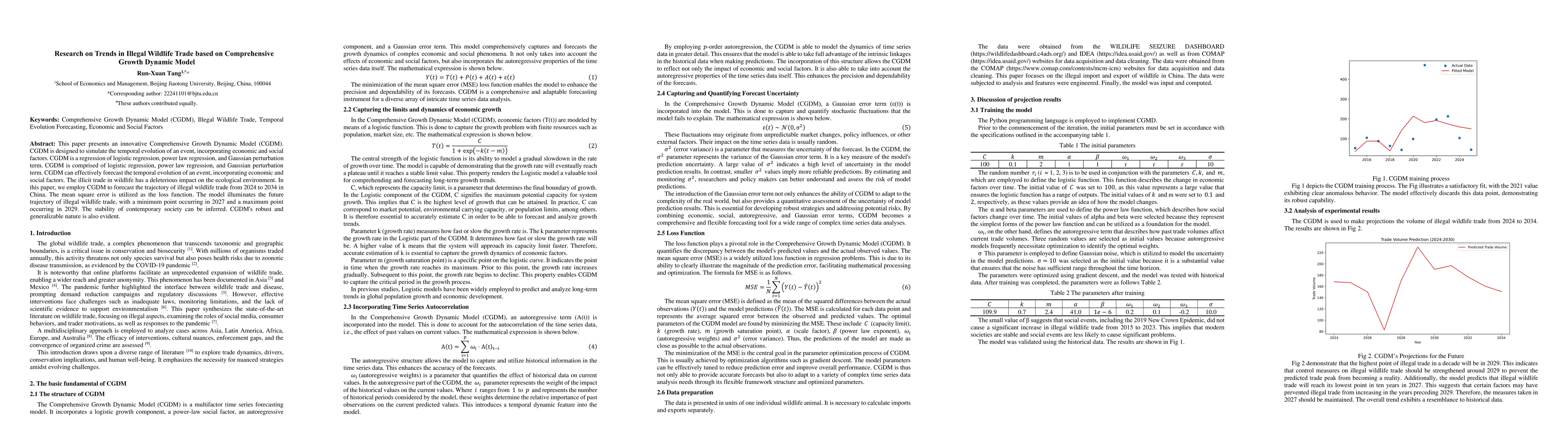 This paper presents an innovative Comprehensive Growth Dynamic Model (CGDM). CGDM is designed to simulate the temporal evolution of an event, incorporating economic and social factors. CGDM is a regression of logistic regression, power law regression, and Gaussian perturbation term. CGDM is comprised of logistic regression, power law regression, and Gaussian perturbation term. CGDM can effectively forecast the temporal evolution of an event, incorporating economic and social factors. The illicit trade in wildlife has a deleterious impact on the ecological environment. In this paper, we employ CGDM to forecast the trajectory of illegal wildlife trade from 2024 to 2034 in China. The mean square error is utilized as the loss function. The model illuminates the future trajectory of illegal wildlife trade, with a minimum point occurring in 2027 and a maximum point occurring in 2029. The stability of contemporary society can be inferred. CGDM's robust and generalizable nature is also evident.