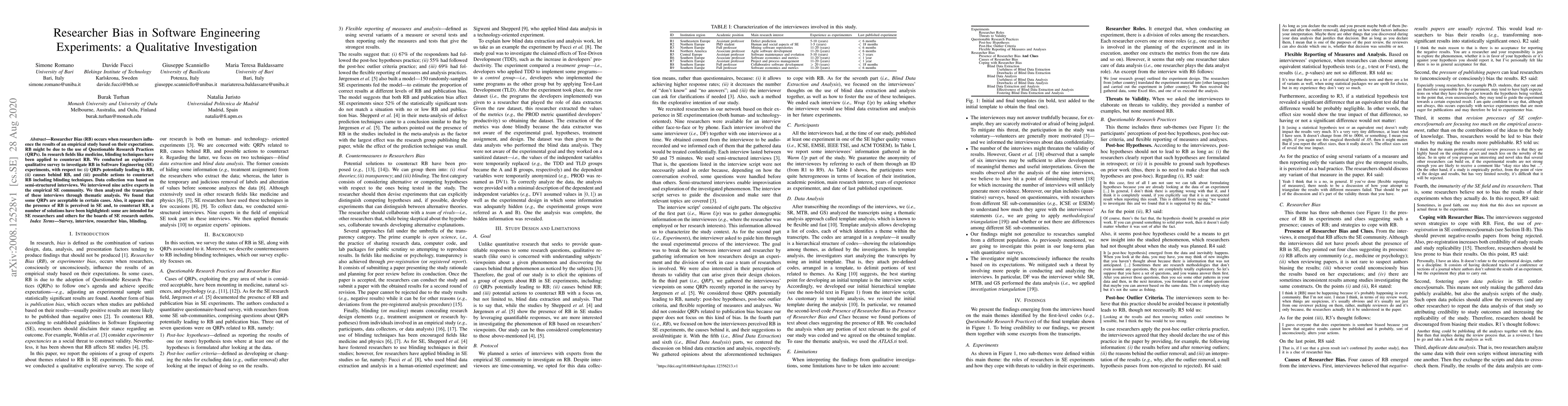 A qualitative survey of 9 software engineering experts found that researcher bias can occur due to questionable research practices, but some practices may be acceptable in certain cases. Several solutions to counteract bias were identified, including techniques for researchers and those for review boards.