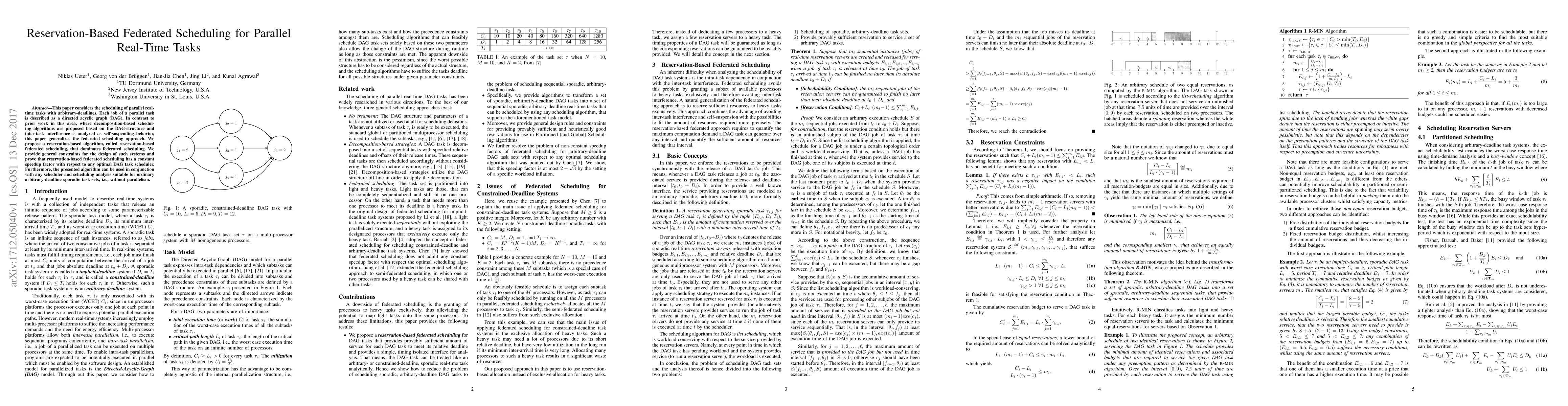 This paper proposes a reservation-based federated scheduling algorithm for parallel real-time tasks represented as directed acyclic graphs (DAGs). It demonstrates a constant speedup factor compared to optimal DAG schedulers and can be used alongside any scheduler for non-parallel tasks.