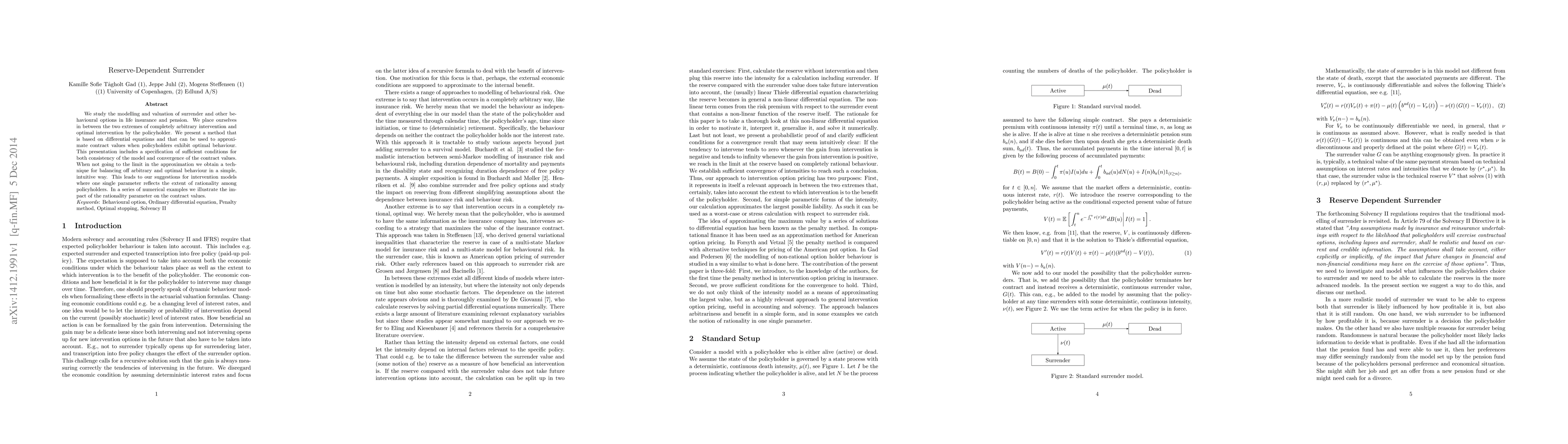 We study the modelling and valuation of surrender and other behavioural options in life insurance and pension. We place ourselves in between the two extremes of completely arbitrary intervention and optimal intervention by the policyholder. We present a method that is based on differential equations and that can be used to approximate contract values when policyholders exhibit optimal behaviour. This presentation includes a specification of sufficient conditions for both consistency of the model and convergence of the contract values. When not going to the limit in the approximation we obtain a technique for balancing off arbitrary and optimal behaviour in a simple, intuitive way. This leads to our suggestions for intervention models where one single parameter reflects the extent of rationality among policyholders. In a series of numerical examples we illustrate the impact of the rationality parameter on the contract values.