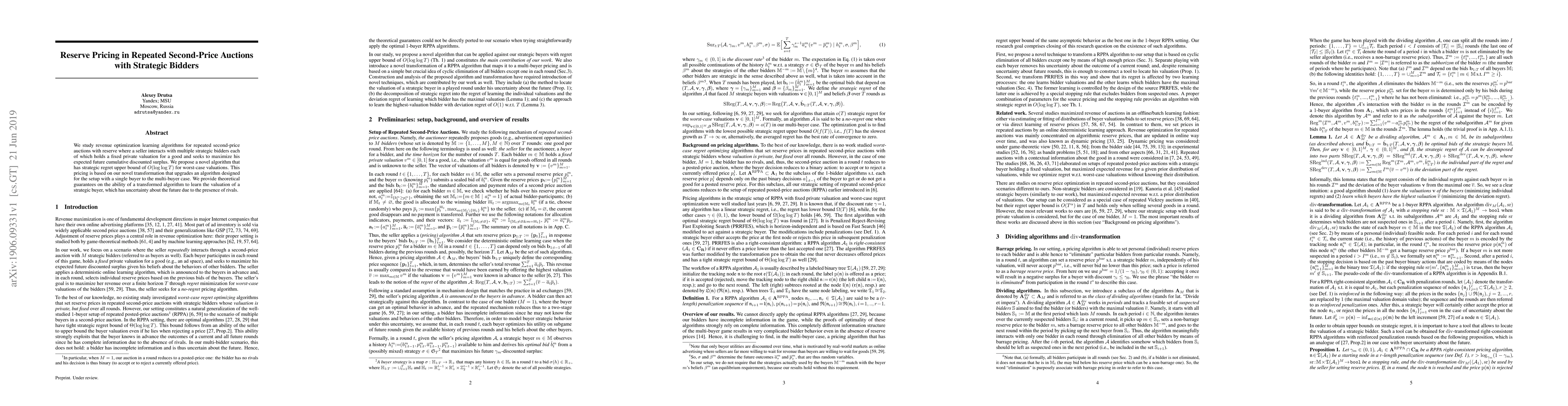 We study revenue optimization learning algorithms for repeated second-price auctions with reserve where a seller interacts with multiple strategic bidders each of which holds a fixed private valuation for a good and seeks to maximize his expected future cumulative discounted surplus. We propose a novel algorithm that has strategic regret upper bound of $O(\log\log T)$ for worst-case valuations. This pricing is based on our novel transformation that upgrades an algorithm designed for the setup with a single buyer to the multi-buyer case. We provide theoretical guarantees on the ability of a transformed algorithm to learn the valuation of a strategic buyer, which has uncertainty about the future due to the presence of rivals.