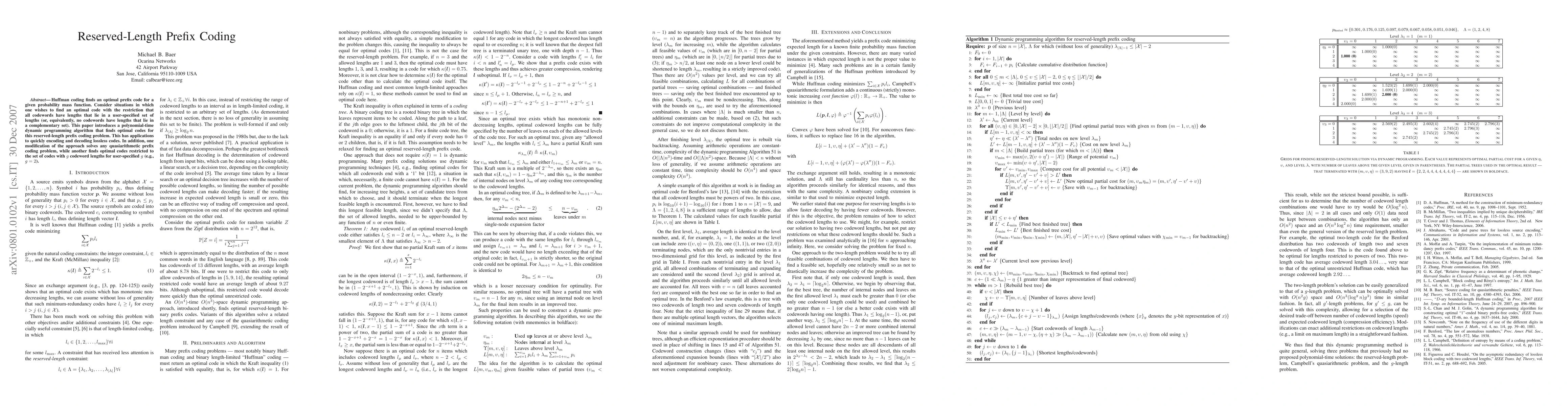 This paper presents a polynomial-time dynamic programming algorithm for finding optimal prefix codes where all codewords must have lengths within a specified set, addressing reserved-length prefix coding. It also extends the approach to solve quasiarithmetic prefix coding problems and find optimal codes with a fixed number of codeword lengths.
