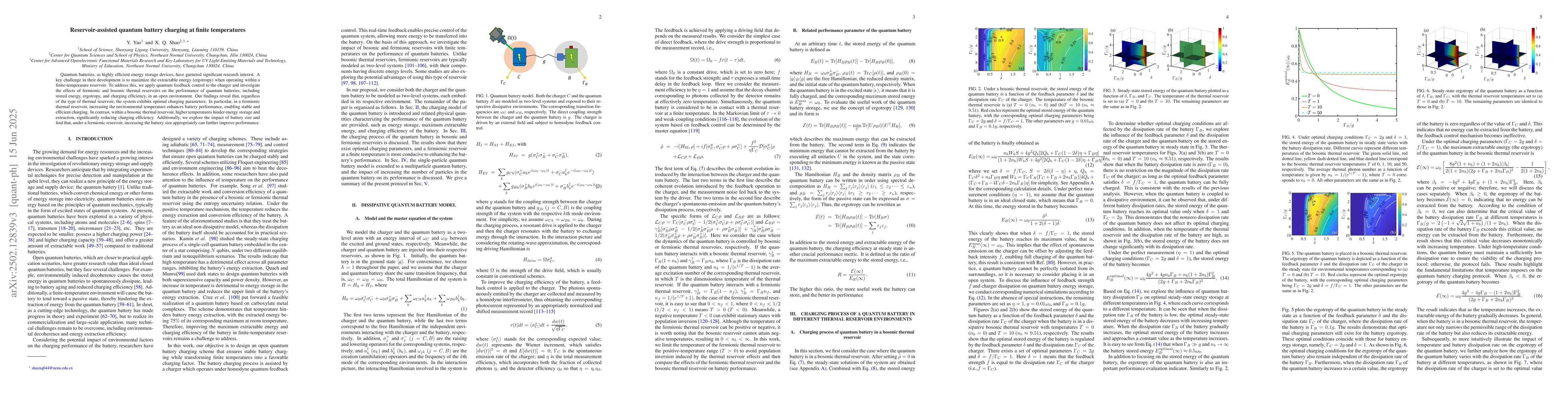 The paper introduces a quantum feedback control mechanism for optimizing charging in quantum batteries under finite-temperature thermal reservoirs, providing insights into the interplay between reservoir type and battery performance.
