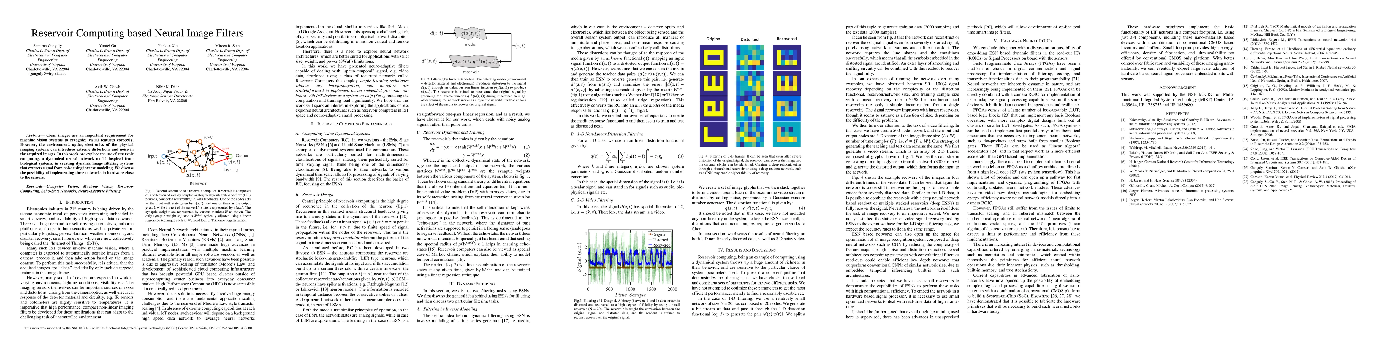 Researchers explore using reservoir computing to create dynamic image filtering systems that can extract signal from noise in images, aiming to improve machine vision recognition accuracy. They discuss the potential for hardware implementation close to sensors to enhance real-world imaging applications.