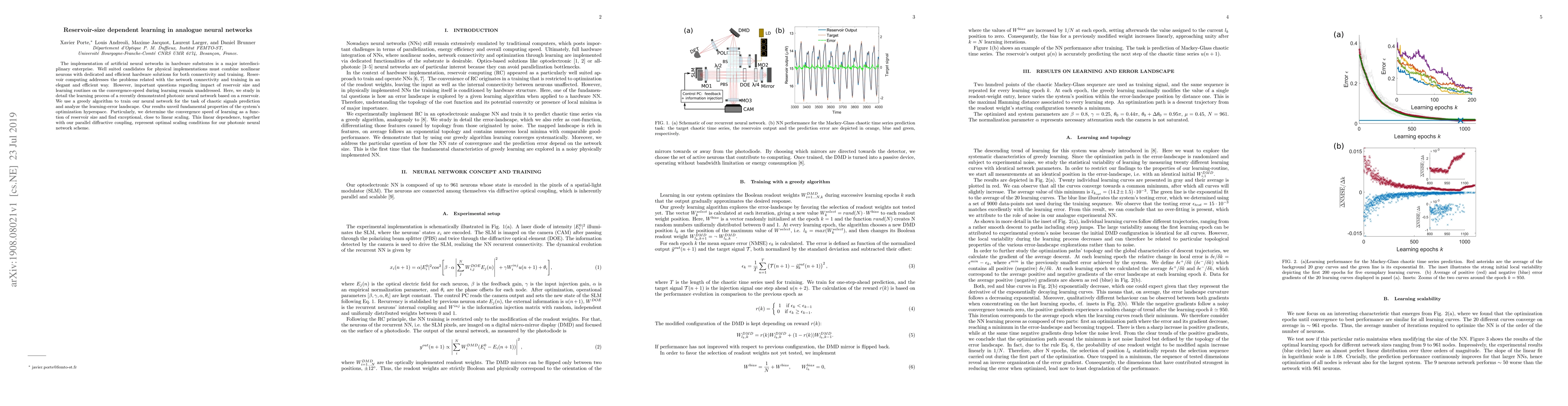 This research is significant as it addresses the impact of reservoir size and learning routines on convergence speed in analogue neural networks, providing insights into the scalability and efficiency of photonic neural network schemes.