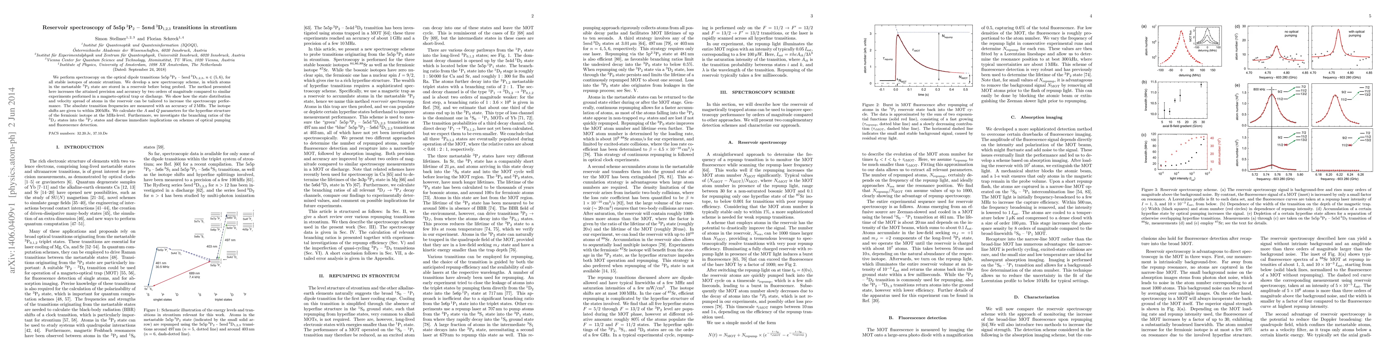 This paper presents a new reservoir spectroscopy technique for studying 5s5p $^3$P$_2$ - 5s$n$d $^3$D$_{1,2,3}$ transitions in strontium isotopes, achieving two orders of magnitude higher precision and accuracy compared to previous methods. The technique stores atoms in a metastable state before probing, leading to accurate measurements of transition frequencies and hyperfine structure parameters.