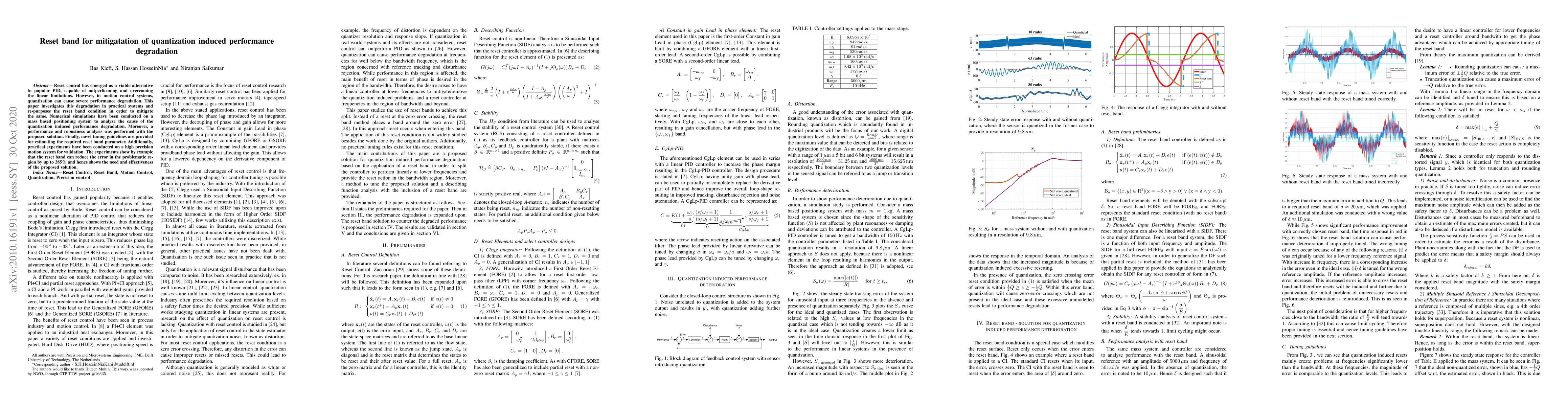 This paper proposes using reset control to mitigate quantization-induced performance degradation in motion control systems, demonstrating significant error reduction through simulations and practical experiments on a high-precision motion system. The study provides novel tuning guidelines for the reset band parameter and validates the effectiveness of the approach.