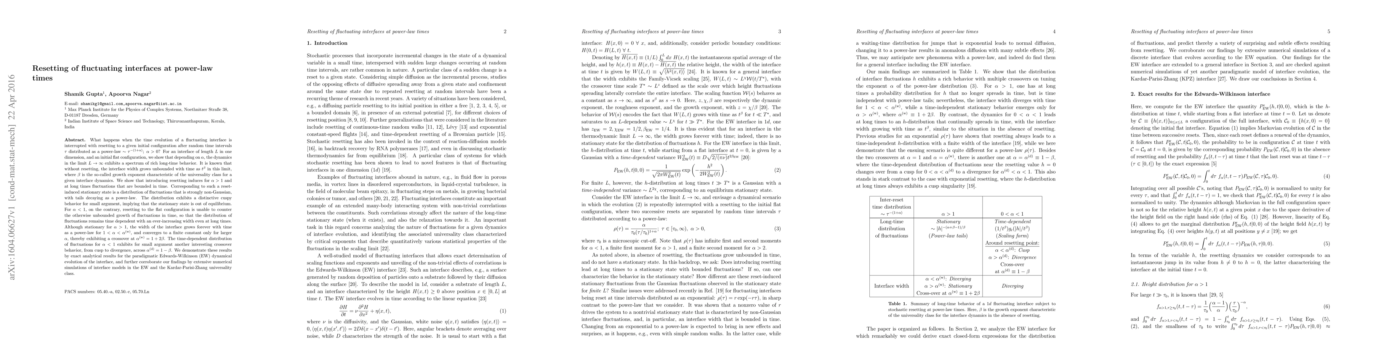 This research examines how resetting to an initial configuration at random power-law intervals affects the long-time behavior of a fluctuating one-dimensional interface. It reveals distinct dynamics based on the resetting parameter u2211 (alpha), with bounded fluctuations and non-Gaussian distributions for u2211 > 1, and unbounded growth for u2211 < 1. The findings are supported by analytical results for the Edwards-Wilkinson model and numerical simulations, demonstrating a crossover at u2211^(w) = 1 + 2u2217 and u2211^(d) = 1 - u2217 for the growth exponent u2217.