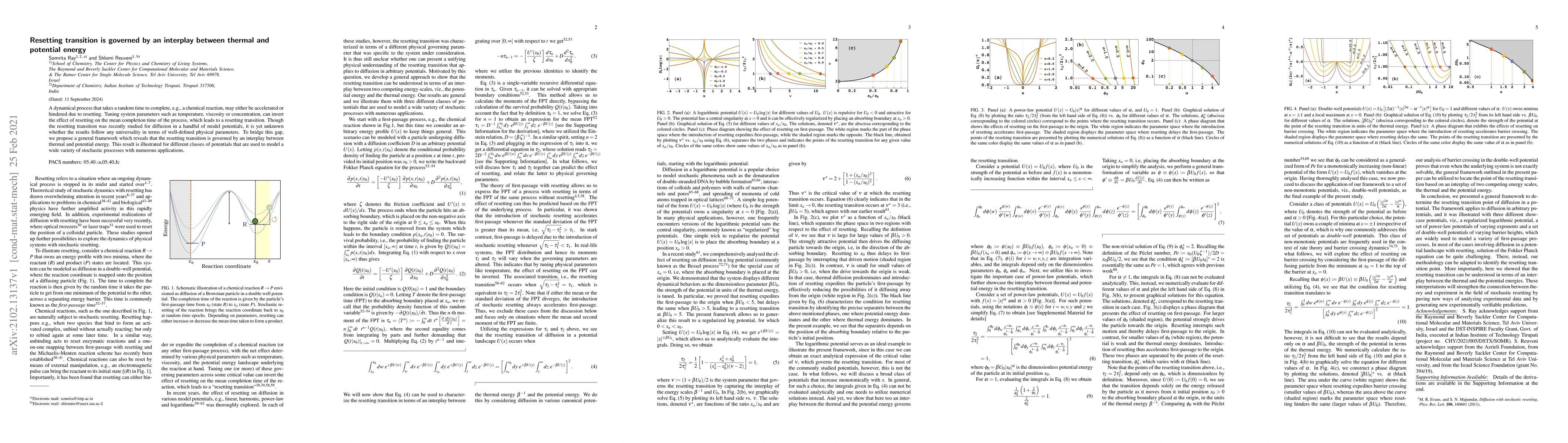 A dynamical process that takes a random time to complete, e.g., a chemical reaction, may either be accelerated or hindered due to resetting. Tuning system parameters such as temperature, viscosity or concentration, can invert the effect of resetting on the mean completion time of the process, which leads to a resetting transition. Though the resetting transition was recently studied for diffusion in a handful of model potentials, it is yet unknown whether the results follow any universality in terms of well-defined physical parameters. To bridge this gap, we propose a general framework which reveals that the resetting transition is governed by an interplay between thermal and potential energy. This result is illustrated for different classes of potentials that are used to model a wide variety of stochastic processes with numerous applications.